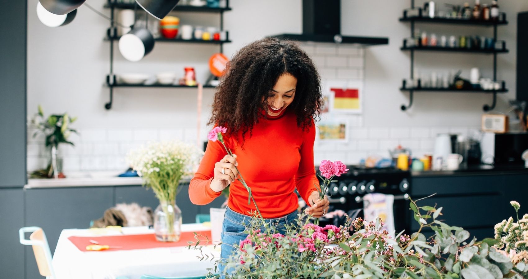 I’d recommend having a play with creating an asymmetrical design or use a hula hoop to create an oversized wreath. Playing with oversized proportions is a really fun way of pushing your creativity.