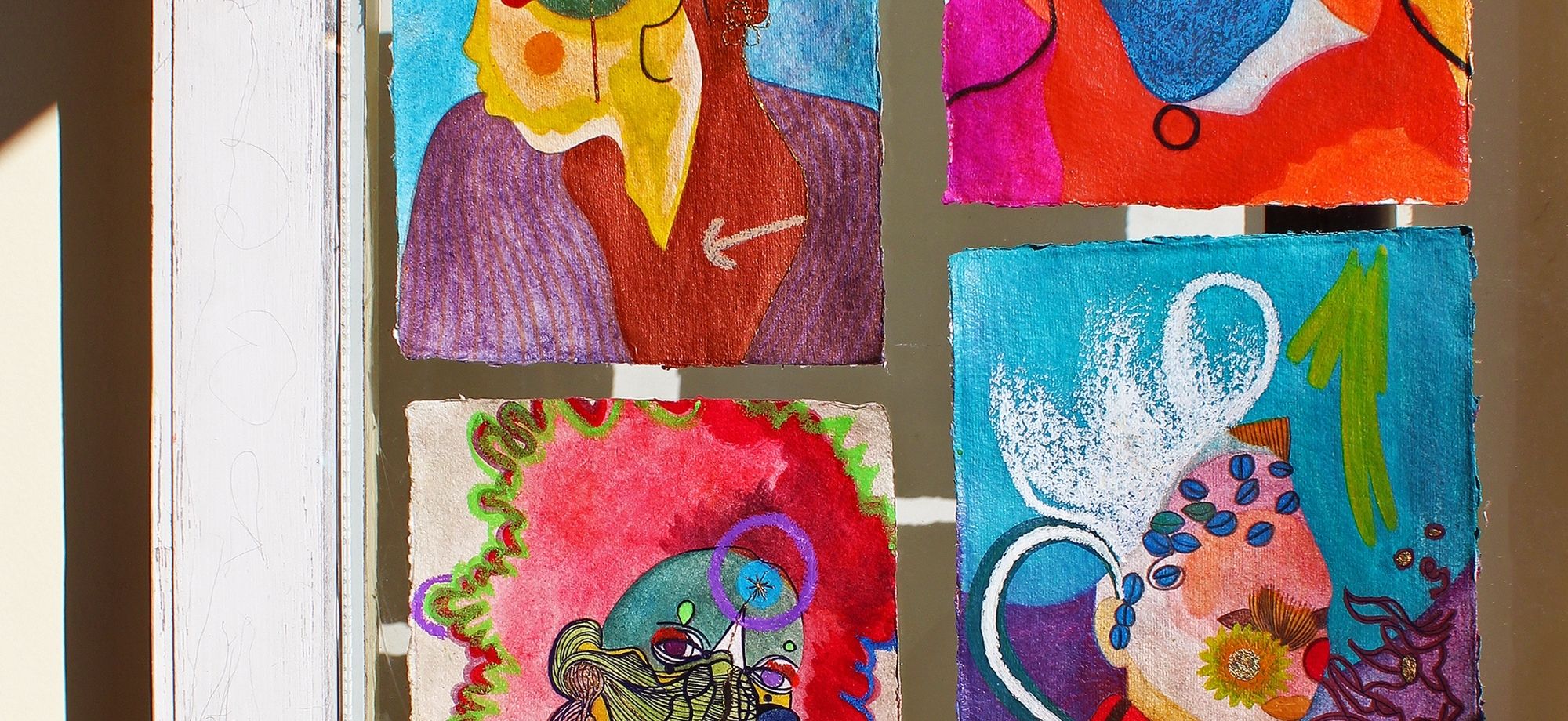 For the BEING collection, I was interested in exploring part figurative, part magical figures, using elements from contemporary circus and symbols from otherworldliness. Working with a warm colour palette of watercolours, the spirit of astrology, African artistry, and a family tree was the starting point. They are imaginary subjects from a borderless family and see me introduce younger subjects as well as men to my natural tendency to draw women. The small scale and delicate techniques of the work is an invitation to feel a sense of intimacy with the subject and be surprised by its unfolding.