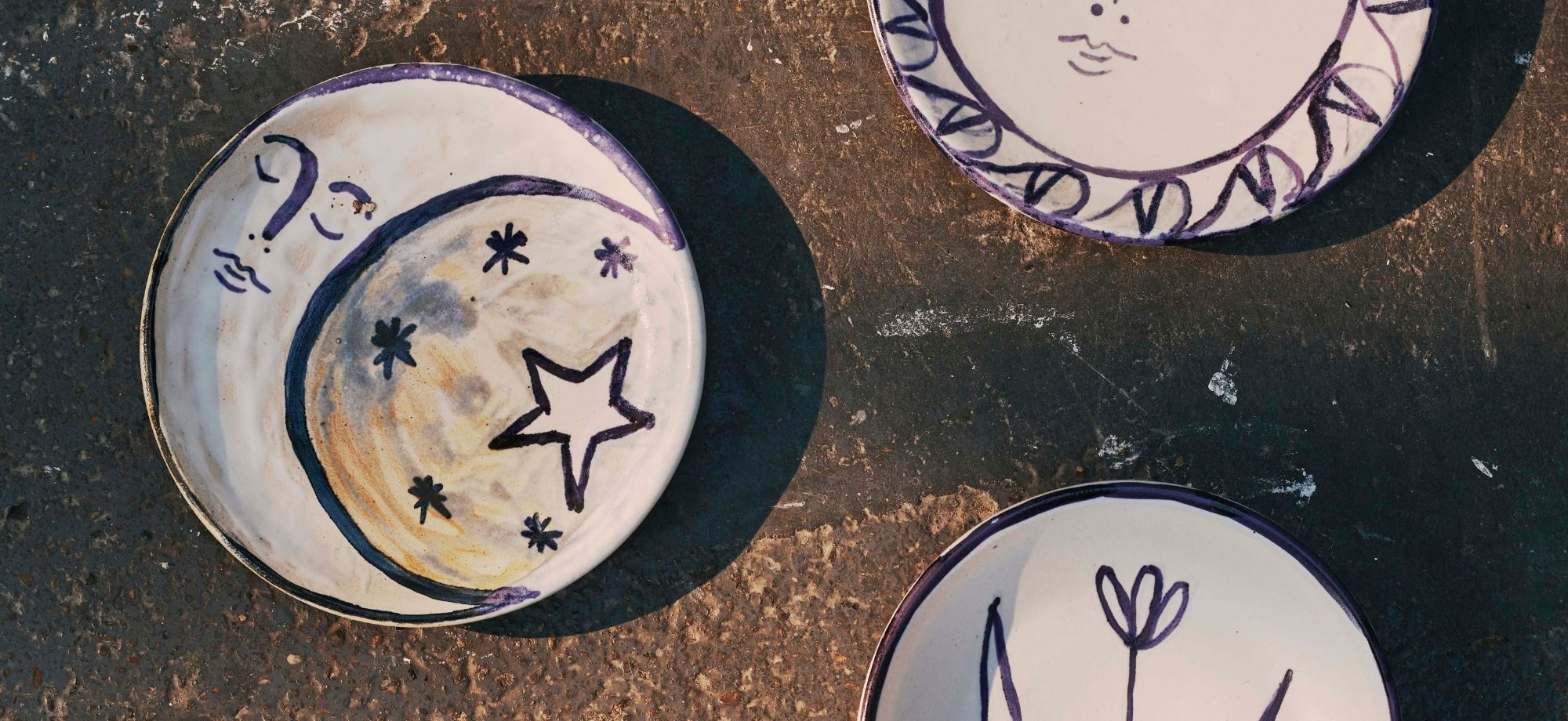 Our first homeware Drop with Frances and Michelle's Moon Plate. Photograph by Chris Horwood, styling by Remy Mishon.