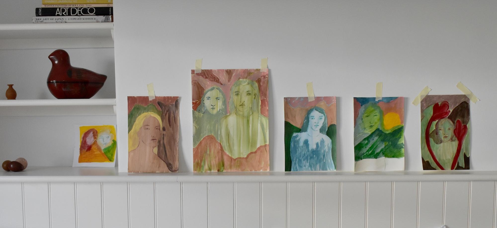 Excited. Feeling like I can go to the studio room and start to focus now. Enjoying making work again, very grateful for the opportunity and for the chance to be here. when I applied the panel at the residency knew I was a new mother and gave me a chance to be here with my new baby- so thankful -Connie-Jean sat cooing on the bed while I worked.