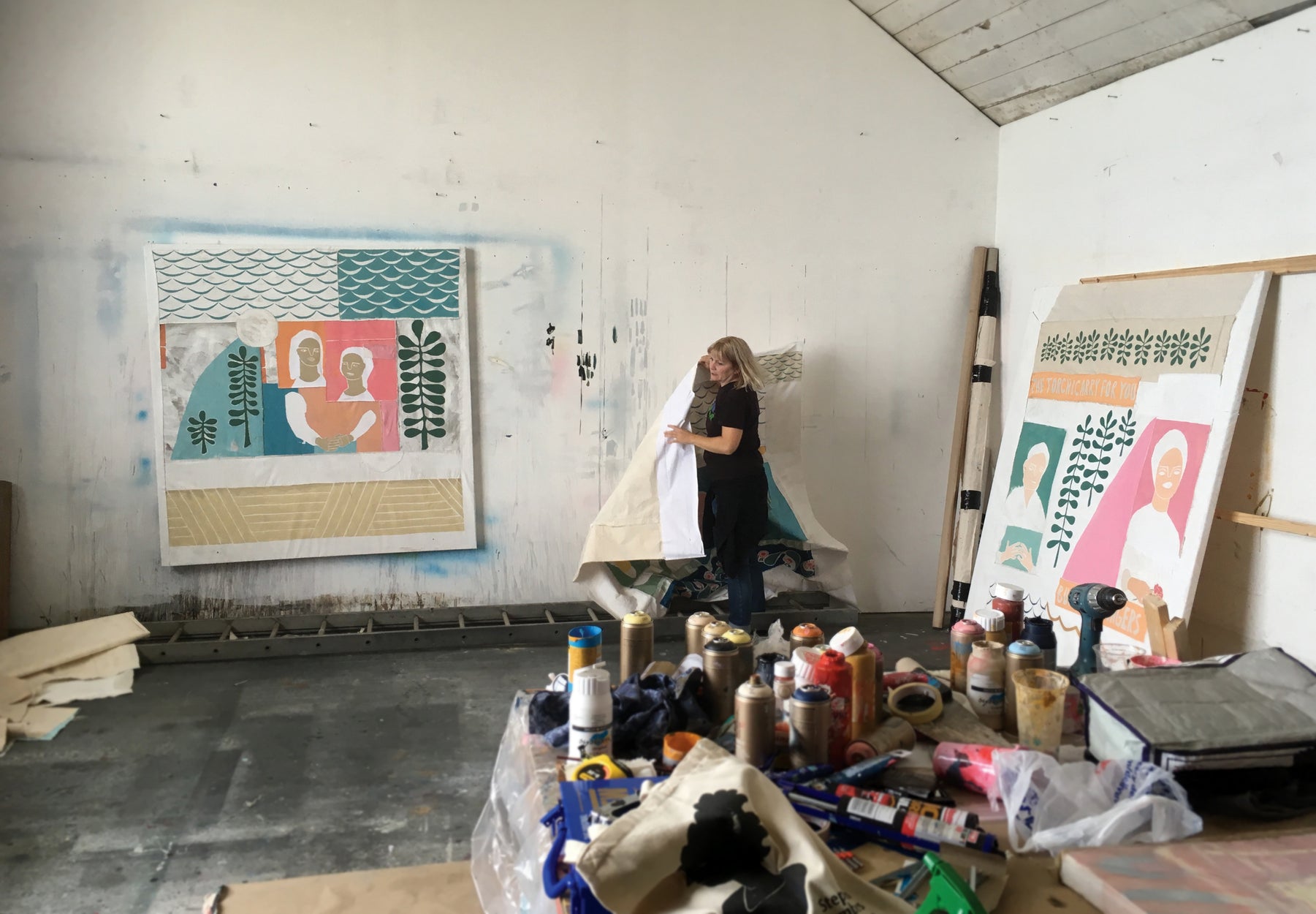 Ali Bassett is a multi-disciplinary artist living in Cornwall. Ali completed a foundation in fine art at Cheltenham, later completing a Fine Art degree at Spike Island in Bristol. She has exhibited across Cornwall, Oxford, Somerset, Bristol, and London. Working on canvas, pieces are stitched together in a patchwork of imagery, figuration, and pattern allowing her to gently tell stories which she likes to be relatable to all.