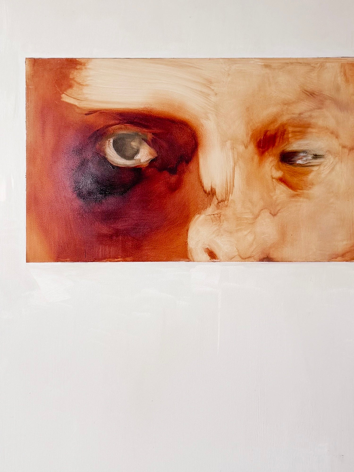 Oil on board, latex and chain
