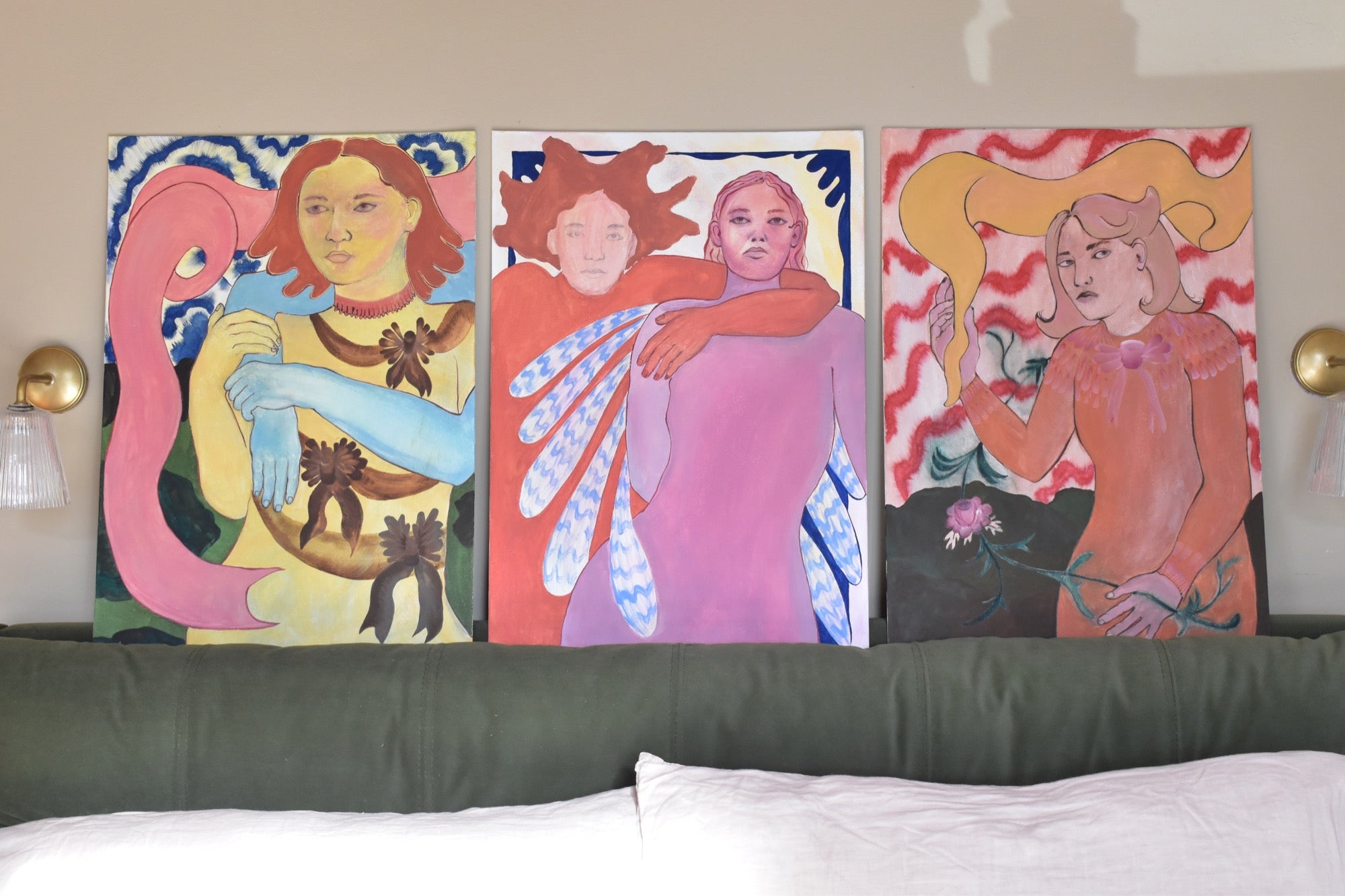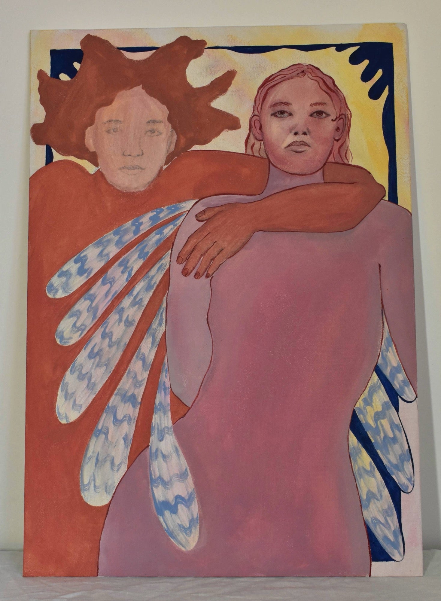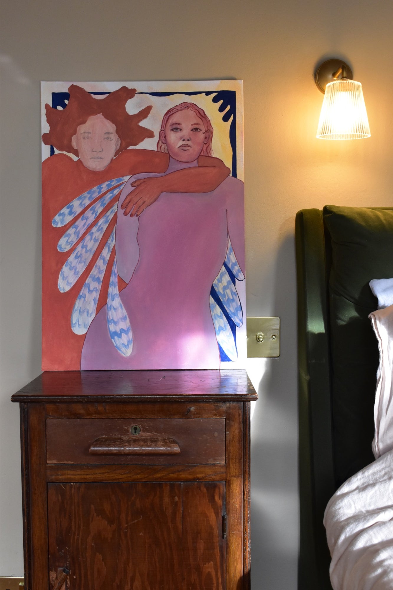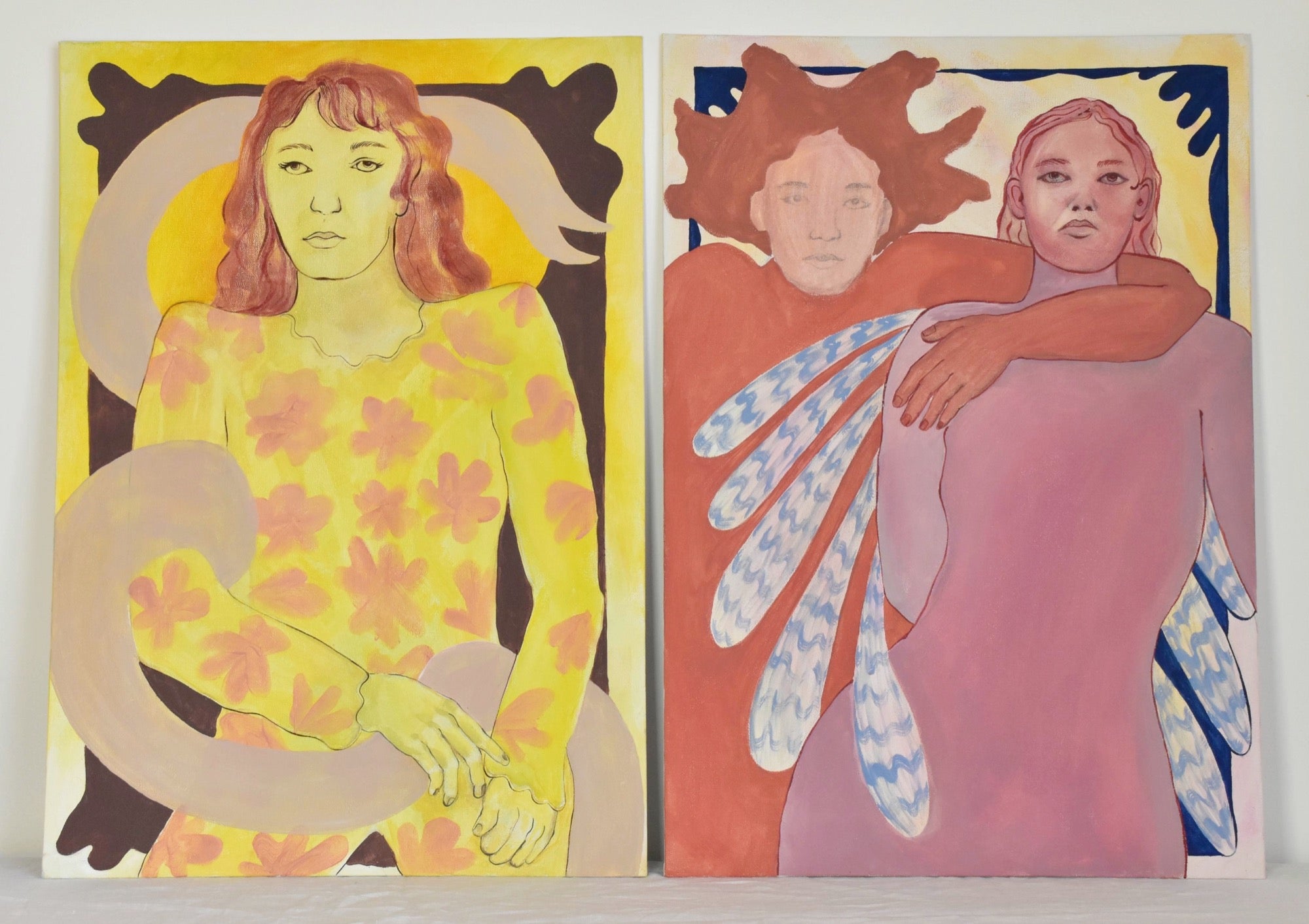 Rebecca’s work uses a bold and playful colour palette and she is influenced by the movement of the human body, as well as drawing upon mythology as a source of inspiration. She has recently shown works at Blue Shop Cottage, Bowes-Parris Gallery, Daniel Raphael Gallery, All Mouth Gallery amongst others and has work acquired by Soho House and private collections globally.