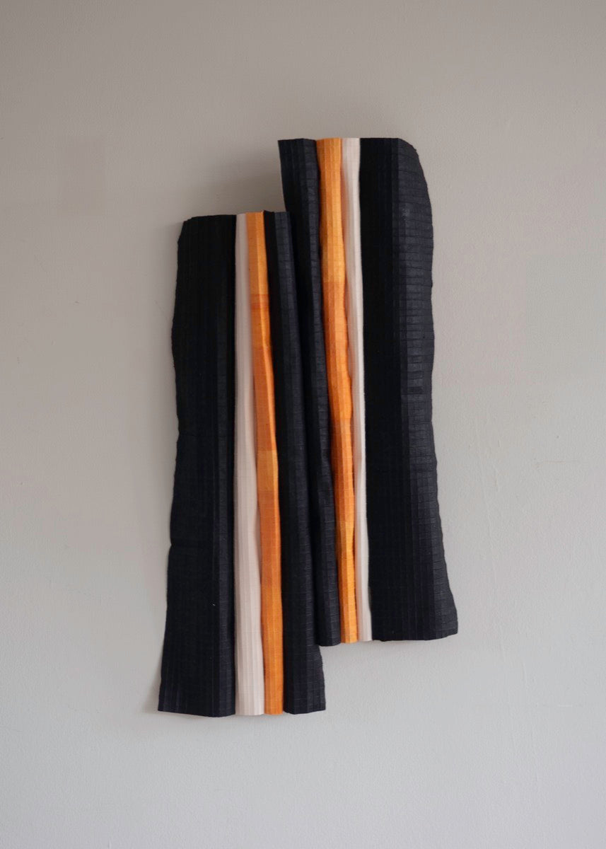 Artist Tom Collison lives and works in Stoke Newington, London. His practice explores materiality through meticulous, process-led making. With a background in print design and a postgraduate degree in textiles from the Royal College of Art, he currently works primarily with paper, using folding as a means to frame space within each sheet. These folds reveal a spectrum of texture and colour, allowing the surface to shift and capture light. Through repetition and disciplined transformation, he investigates the quiet passing of time, creating works that hover between movement and stillness, presence and the trace of process.