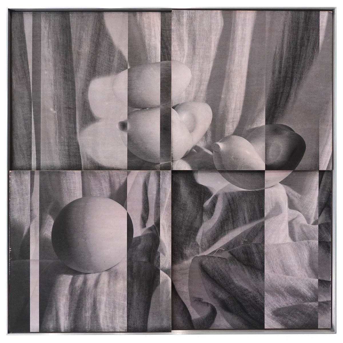 A recurring theme throughout her work is sequence; through mirrored and parallel forms, she evokes the sense of a narrative unfolding, suggesting both a before and an after, and hinting at a story beyond the frame.