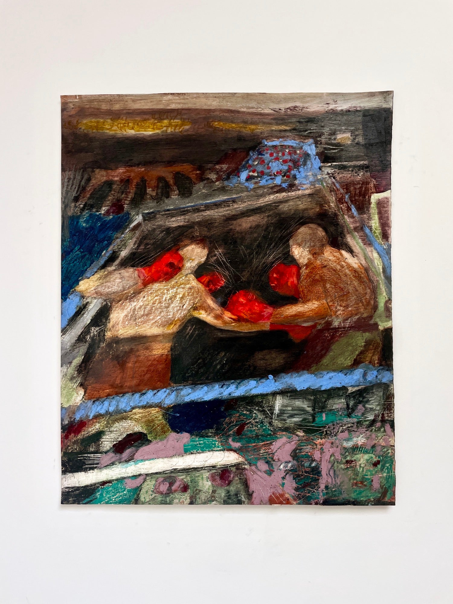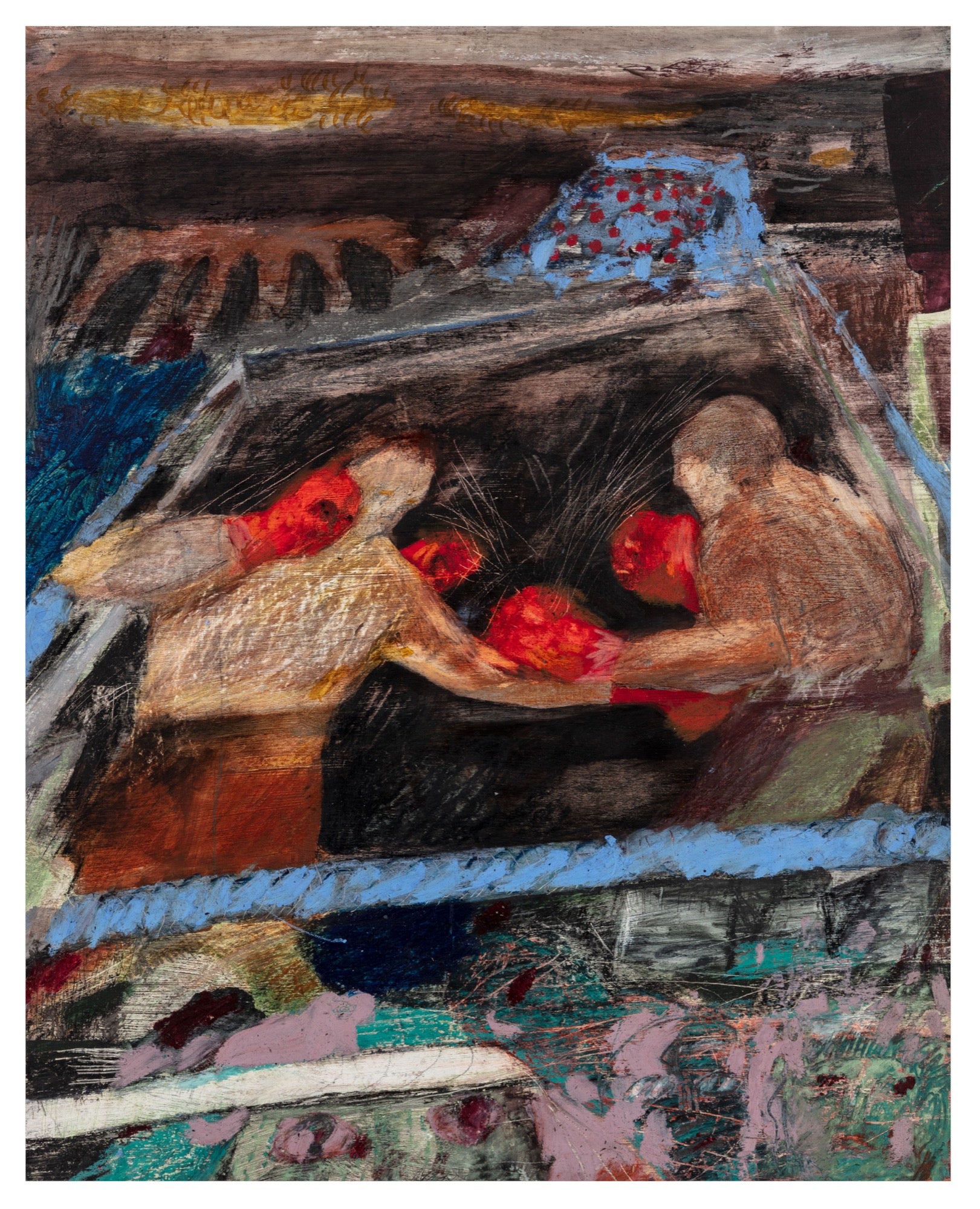 Ink, oil pastel and enamel paint on primed paper