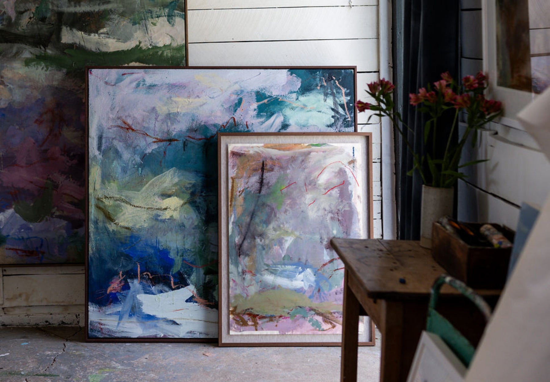 "This new body of work reflects a deeper connection to femininity in both nature and process. Working with smaller brushes and more deliberate, intuitive gestures, each piece carries a sense of softness balanced by quiet strength. There’s a grounded, elemental quality throughout—an exploration of power through delicacy, and presence through restraint. The work speaks to the quiet resilience and rhythm found in the natural world." - Of Earth & Ease, Bethany Holmes