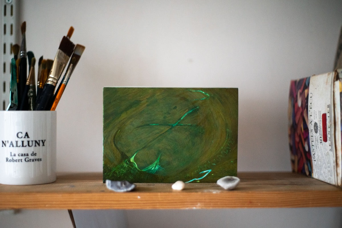 Since graduating from the Ruskin School of Art in 2019, Grace has exhibited across the UK. Her debut solo show, Elemental Drift, was held at Bridport Arts Centre in 2024 following ‘The Art of Fresco’, a studio and research project (2022-23). She has attended artist residencies in France, Portugal, and Cyprus, and has recently completed the Turps Correspondence Course.