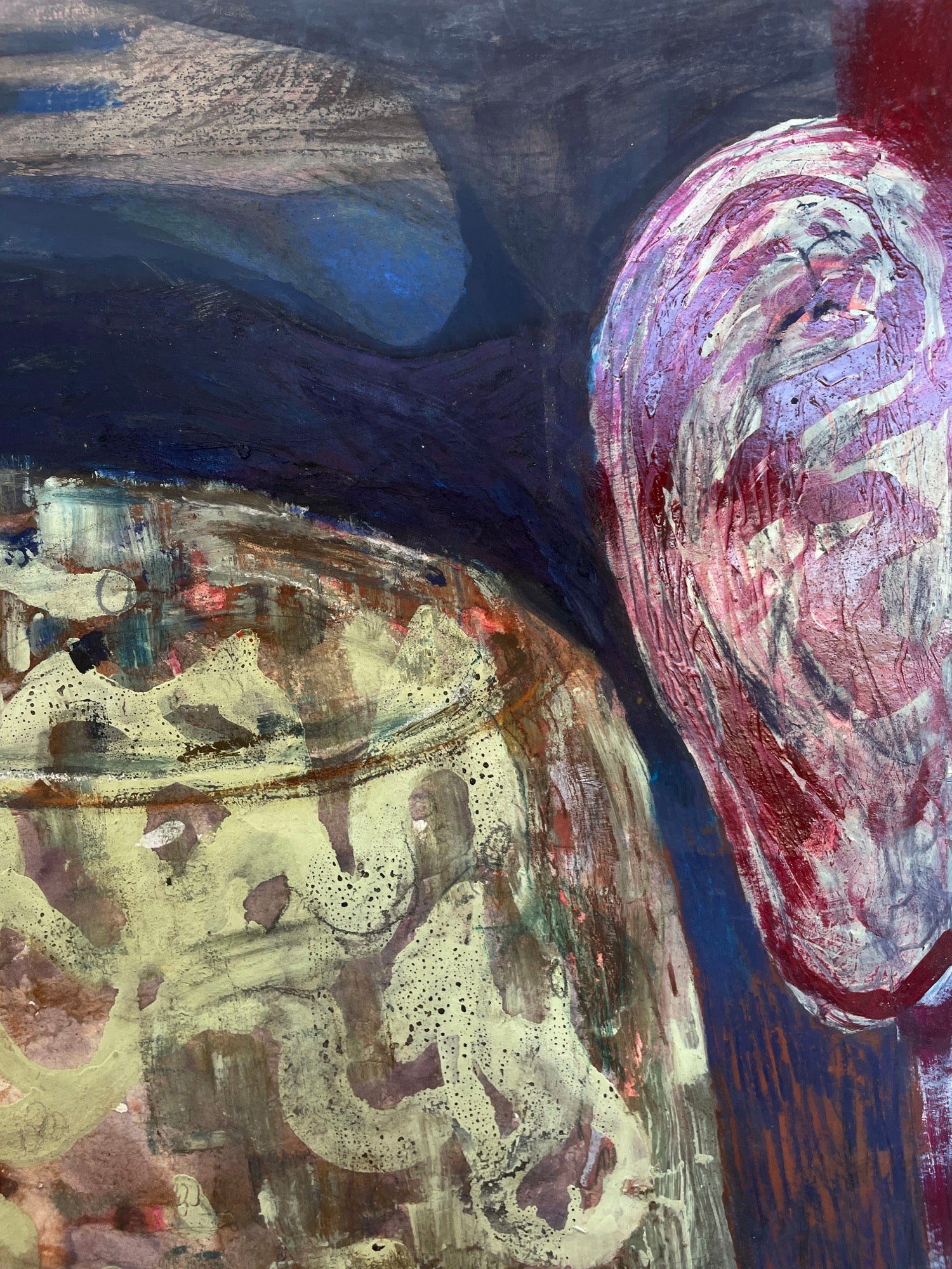 Rebecca Ashton is a British/American multidisciplinary artist, based in London. Her practice lingers between self-referential fact and fiction, where observation is unsettled by memory, writing, and the uncanny. Colour and texture play a central role, layered through persistent working and reworking that allow her images to oscillate between the intimate and disconcerting. She works with everything from foraged natural pigments, oils, to the raw immediacy of a ballpoint pen - bridging the crude and the delicate. Her drawings speak to this process of accumulation, seeking to crystallise moments of connection while holding space for ambiguity and strangeness.