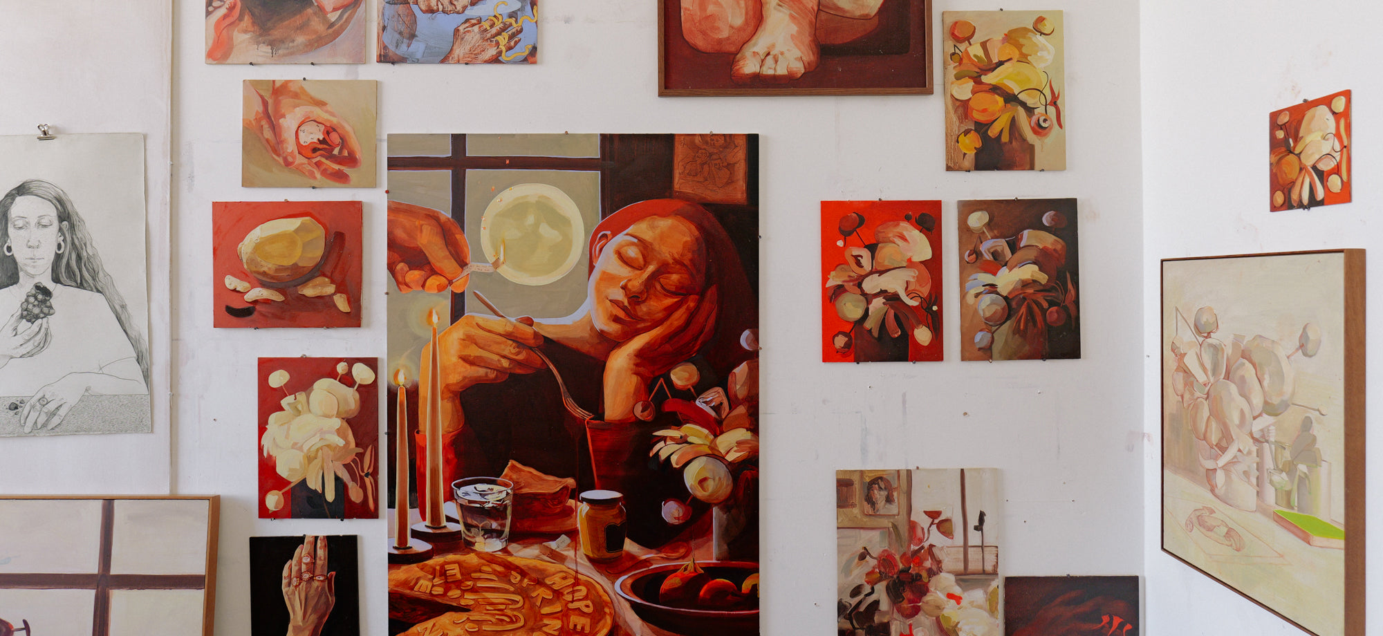 Emblems considers the experience of meaning and memory through objects. Gesturing towards art historical archetypes of still life and tableau, these works bring together ideas of domesticity, ephemerality, and theatricality. With all three artists working across painting and sculpture, spaces of the domestic are woven into symbolic sites of imagination.
