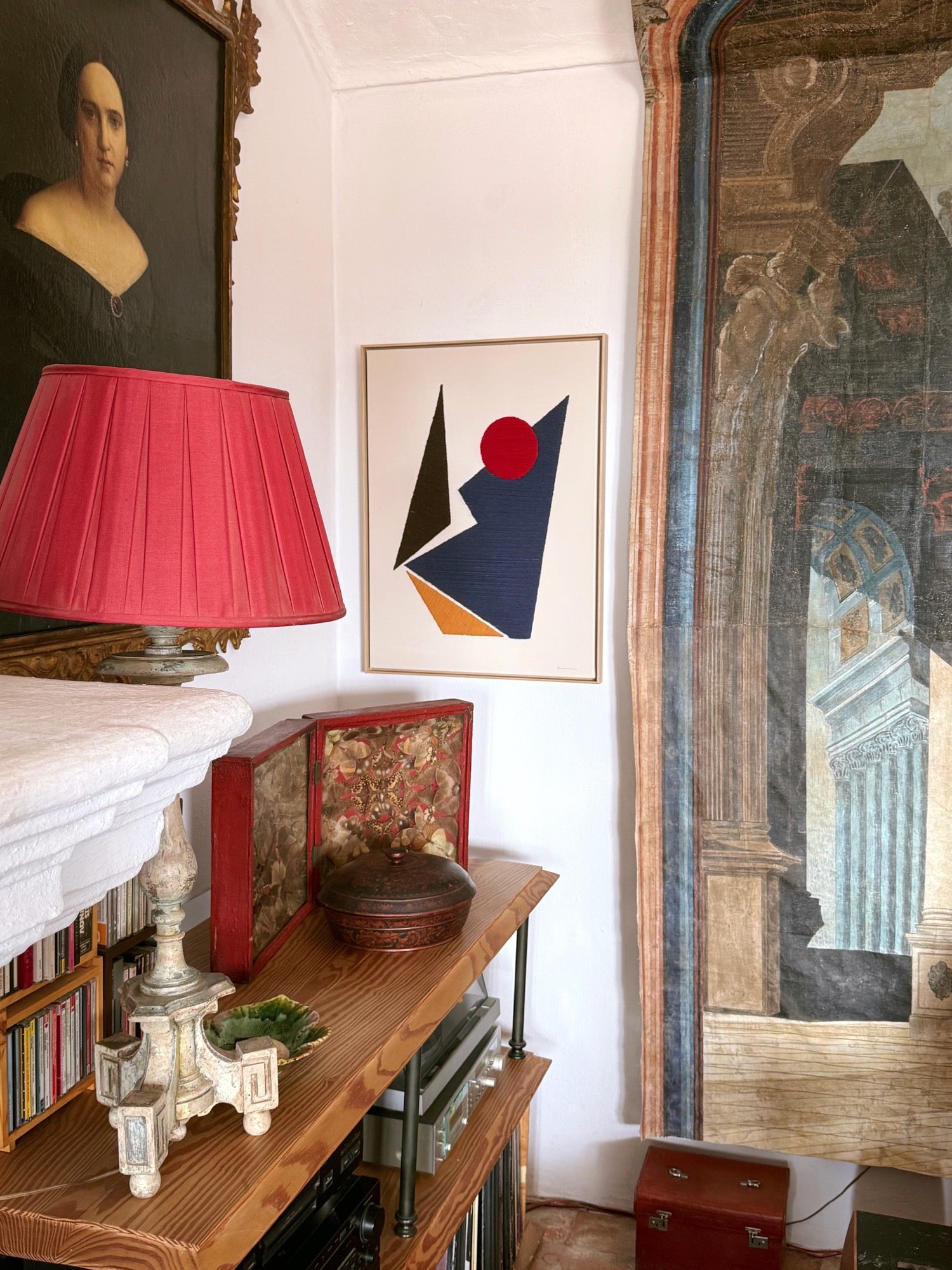 Laura is perhaps best-known for her hand-embroidered canvases that embrace and revisit artisanal weaving techniques with a strong design aesthetic. Each embroidered piece is handcrafted in her studio using natural and ethically sourced yarns such as merino and alpaca wool, cotton and jute. She has also more recently created a collection of ceramics which were inspired by lockdown and her Spanish heritage. These “Amphoras” are terracotta vases created in collaboration with an artisan in the South of Spain, which Laura then paints - using the vessel as her canvas.