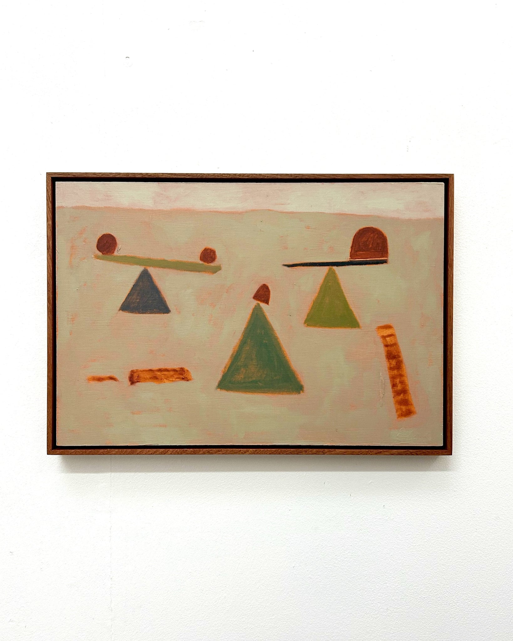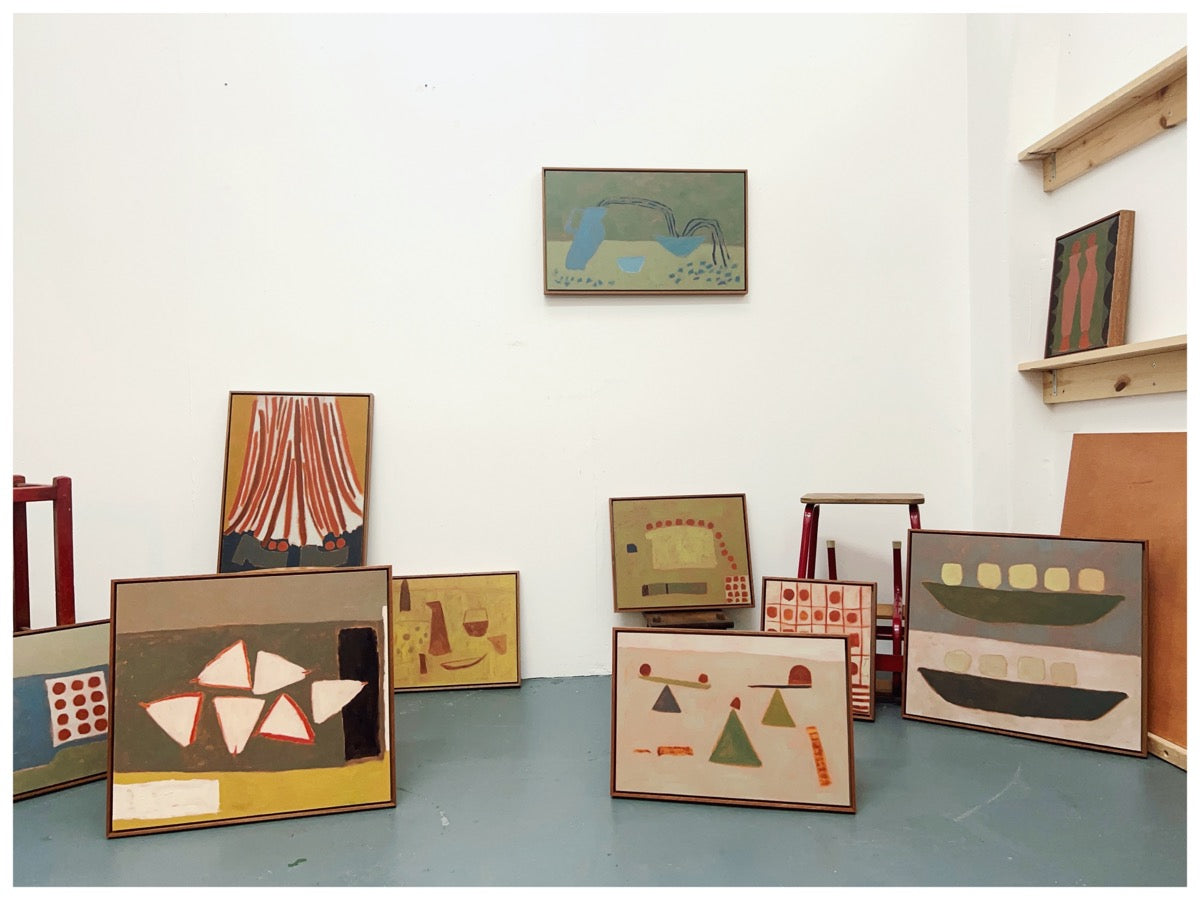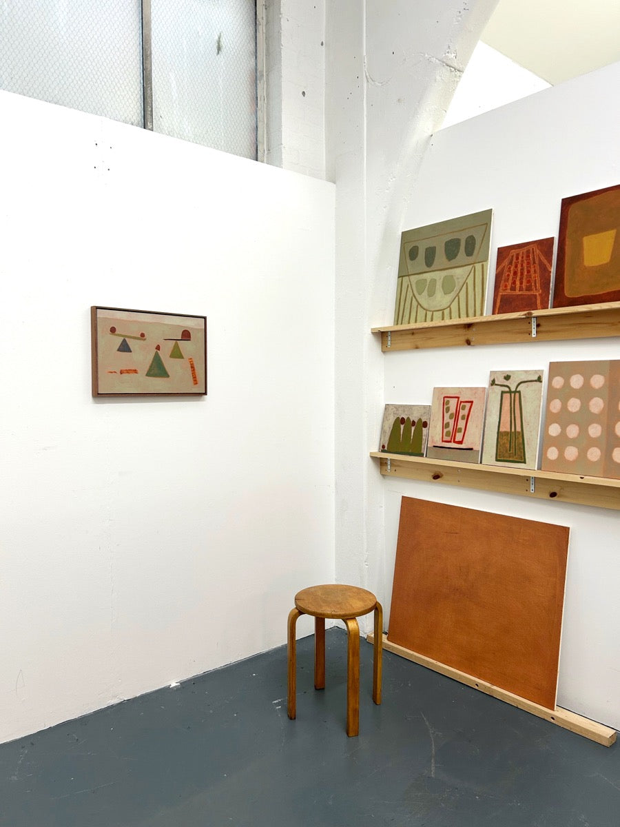 Jay Harper is a British painter based in Bristol, England. Instinctively focused on capturing a feeling, Jay will often use different methods of painting depending on mood. Sometimes painting from a direct reference and other times planning an idea in her mind, and letting that come through in a more free-form spirit. She has a great fondness of muted colour and shape, which are both the foundations of her artworks. Painting with oil onto wood, Jay will often wipe away paint she’s applied to reveal pre-primed colours, playing with the idea of when a work is finished, ever careful to not paint past the feeling.