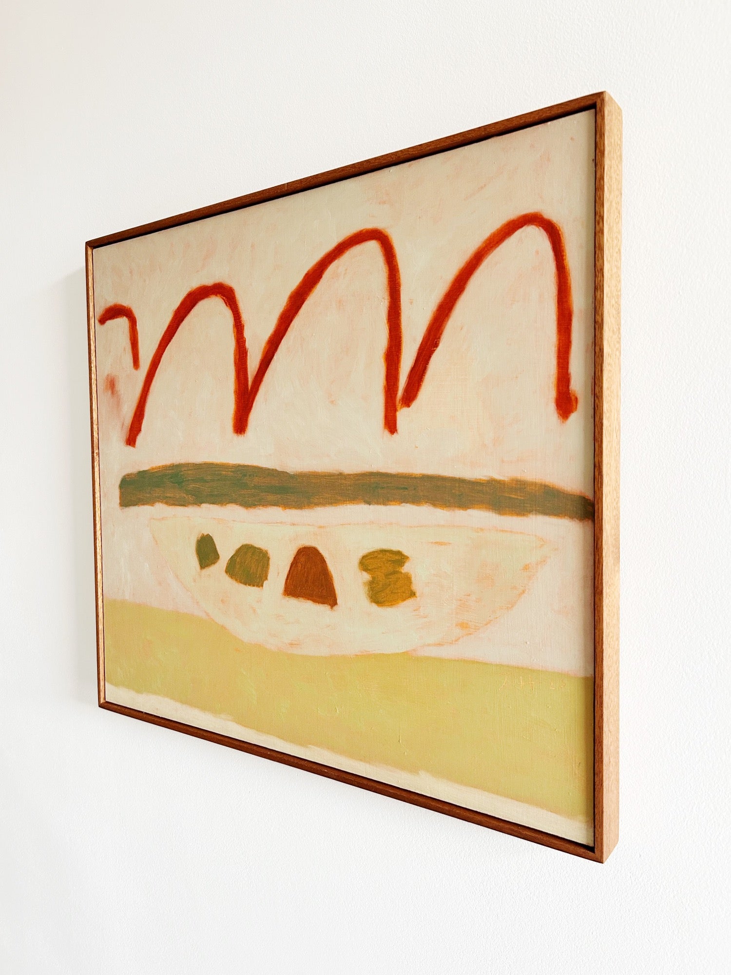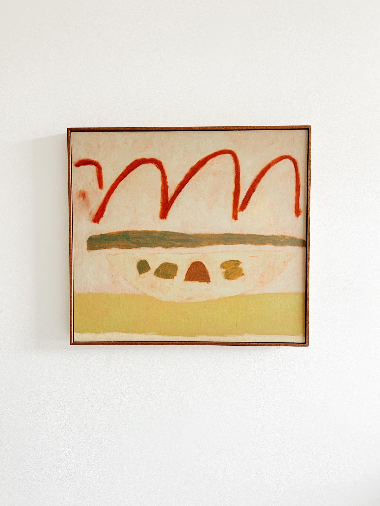 Jay paints instinctively, focusing on capturing a feeling, so will often use different methods dependent on mood. Sometimes painting from a direct reference, other times planning an idea in her mind, and letting that come through in a more free-form spirit. She paints with oil on wood, often wiping away paint she’s applied to reveal pre-primed colours, and playing with the idea of when a work is finished, ever careful to not paint past the feeling.