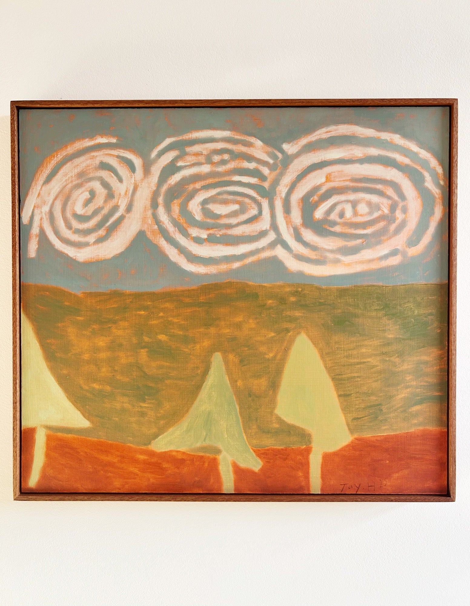 Jay paints instinctively, focusing on capturing a feeling, so will often use different methods dependent on mood. Sometimes painting from a direct reference, other times planning an idea in her mind, and letting that come through in a more free-form spirit. She paints with oil on wood, often wiping away paint she’s applied to reveal pre-primed colours, and playing with the idea of when a work is finished, ever careful to not paint past the feeling.