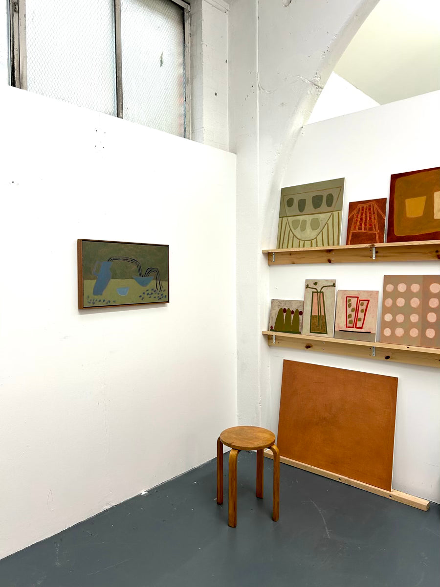 Jay Harper is a British painter based in Bristol, England. Instinctively focused on capturing a feeling, Jay will often use different methods of painting depending on mood. Sometimes painting from a direct reference and other times planning an idea in her mind, and letting that come through in a more free-form spirit. She has a great fondness of muted colour and shape, which are both the foundations of her artworks. Painting with oil onto wood, Jay will often wipe away paint she’s applied to reveal pre-primed colours, playing with the idea of when a work is finished, ever careful to not paint past the feeling.