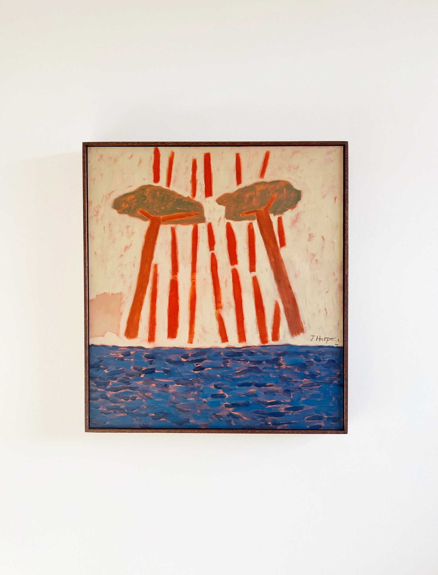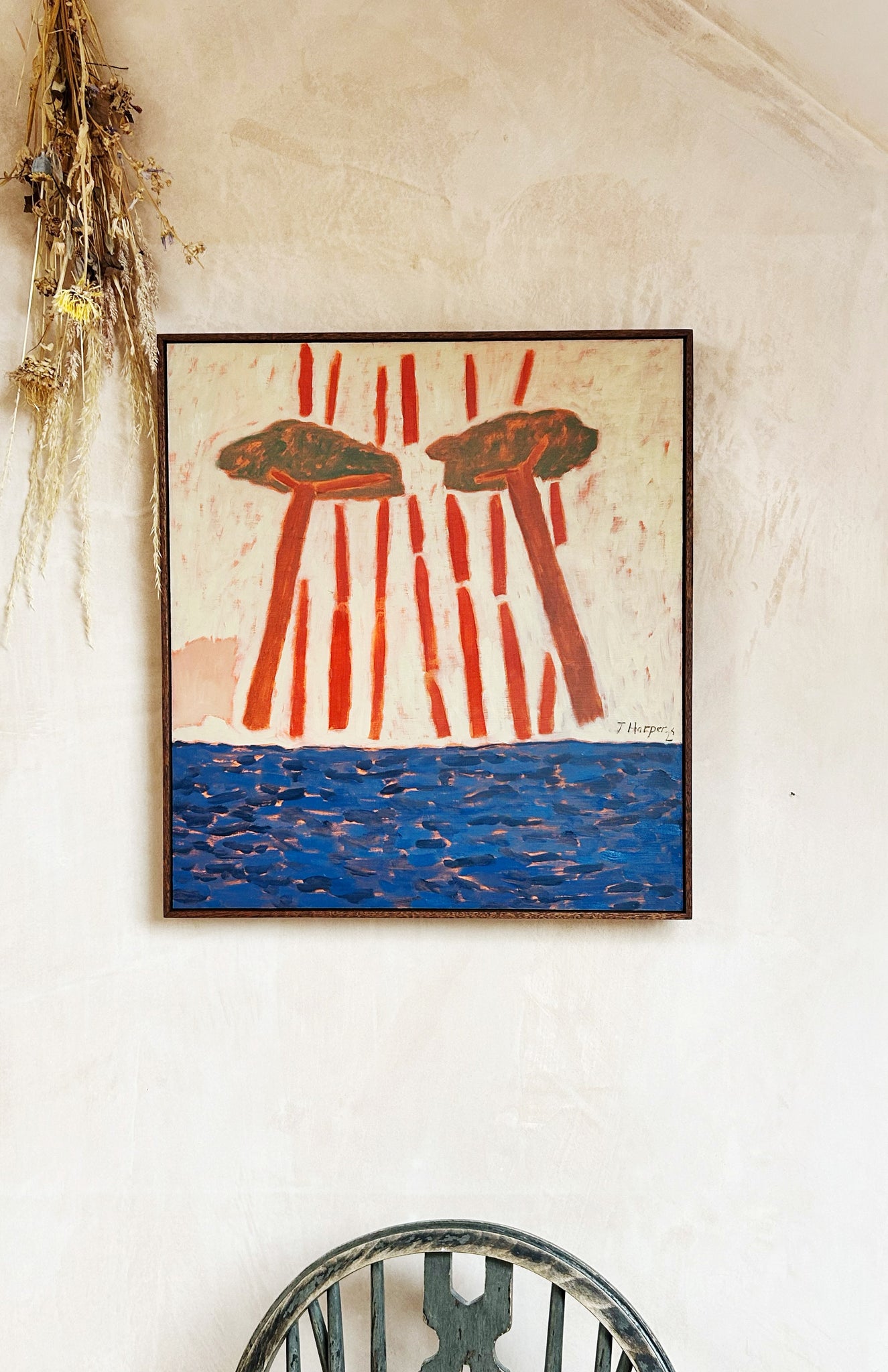 Jay studied fashion in Falmouth before interning with Vivienne Westwood. After a year of life in the city, she retreated back to the calm of Cornwall, where she began to paint. The meditative state and calmness she finds in painting is what comes across in her work, and while she loves to play with different subjects and techniques, it’s this innate feeling of peace and calm which radiates through each piece.