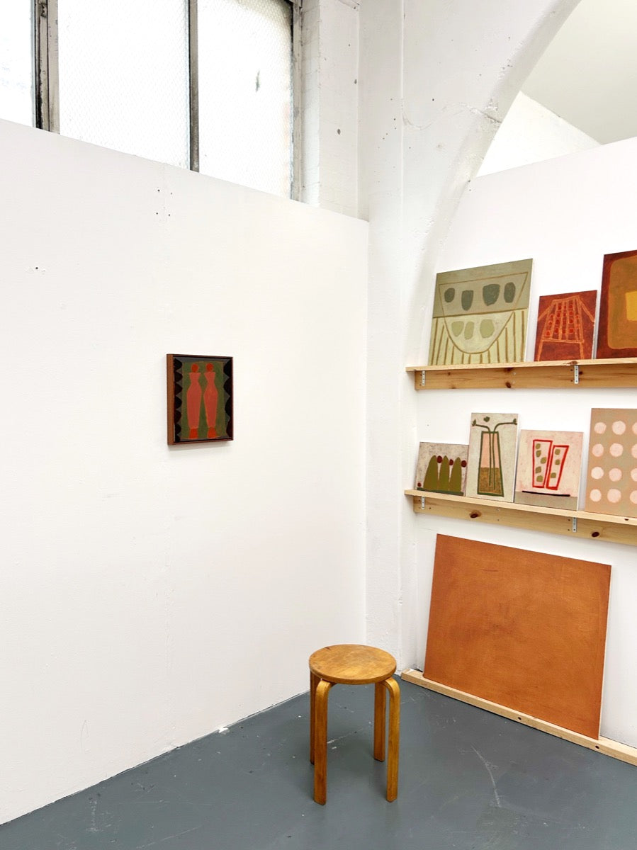 Jay Harper is a British painter based in Bristol, England. Instinctively focused on capturing a feeling, Jay will often use different methods of painting depending on mood. Sometimes painting from a direct reference and other times planning an idea in her mind, and letting that come through in a more free-form spirit. She has a great fondness of muted colour and shape, which are both the foundations of her artworks. Painting with oil onto wood, Jay will often wipe away paint she’s applied to reveal pre-primed colours, playing with the idea of when a work is finished, ever careful to not paint past the feeling.