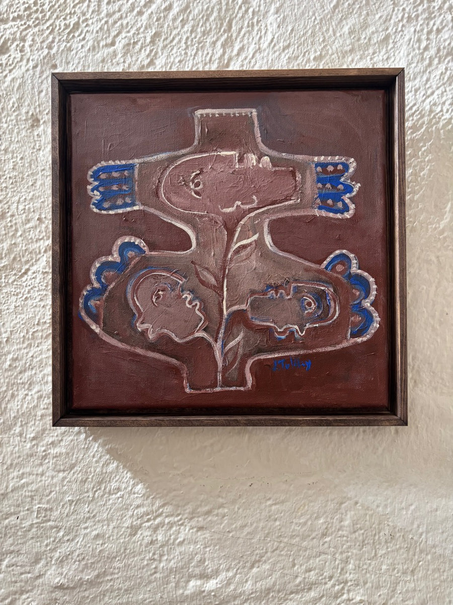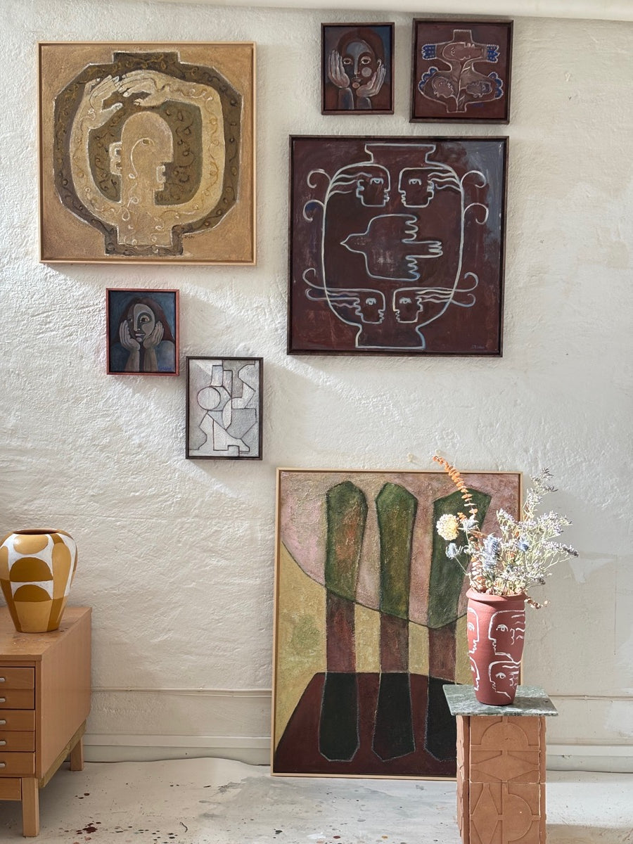 She creates her own paint mixtures for her signature abstract pieces, using mortar as a thickener to give paint a solid structural feel once the material dries. She enjoys the added dimension to the process and physicality of the final pieces. This materiality is usually contrasted by a warm and gentle colour scheme, looking for a balance that is both expressive and vulnerable.