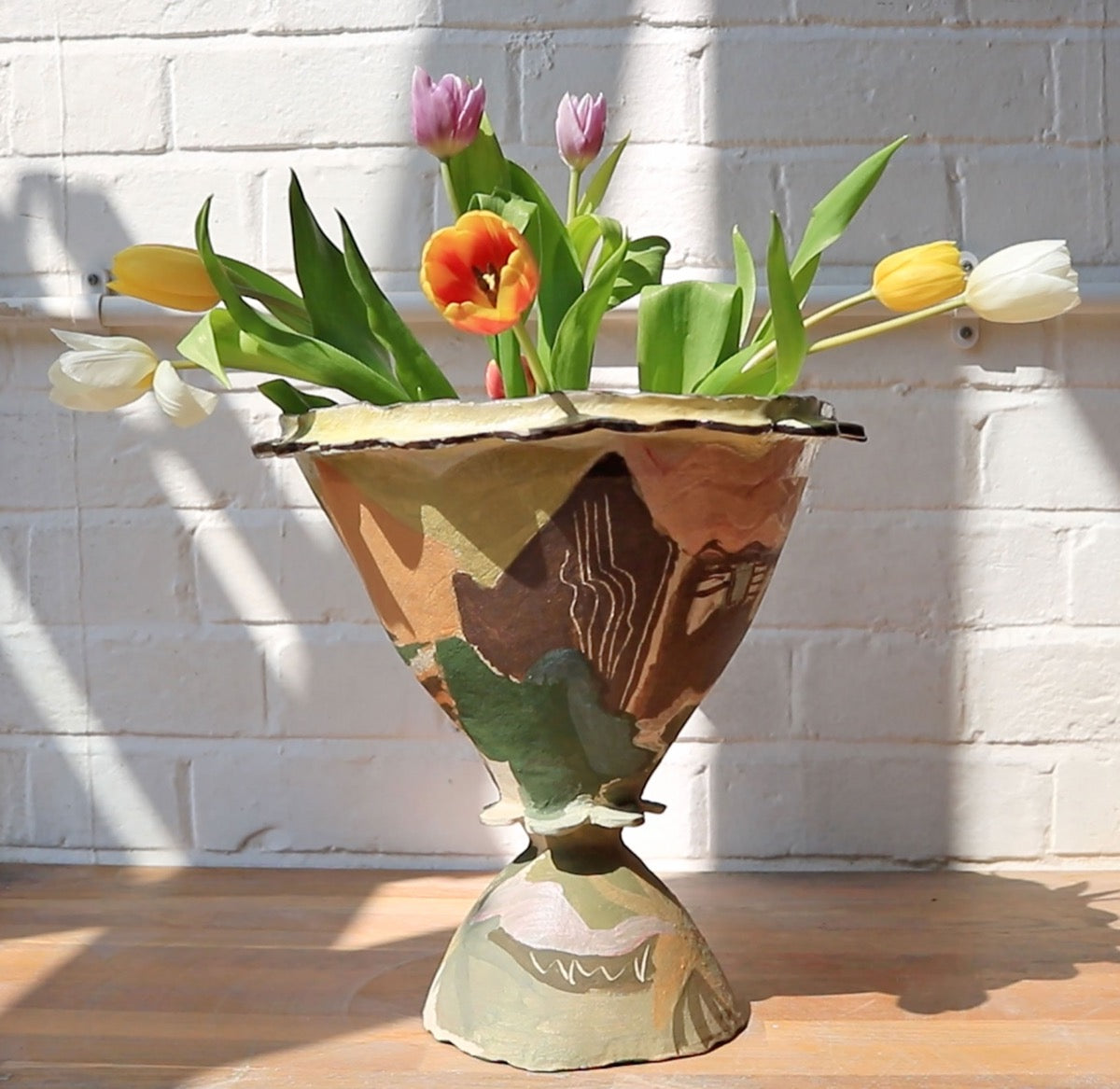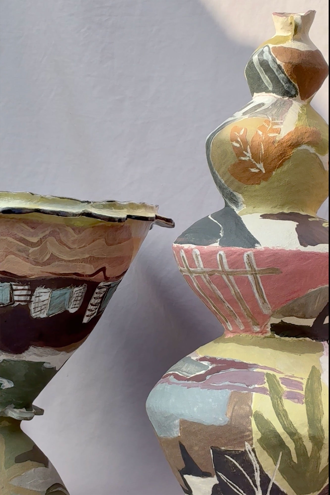 Katie Moore is a London-based ceramic artist whose practice is rooted in hand-building and painting. She discovered her preferred way of making while working remotely in a makeshift studio, where the freedom of coiling by hand allowed space for reflection and experimentation.