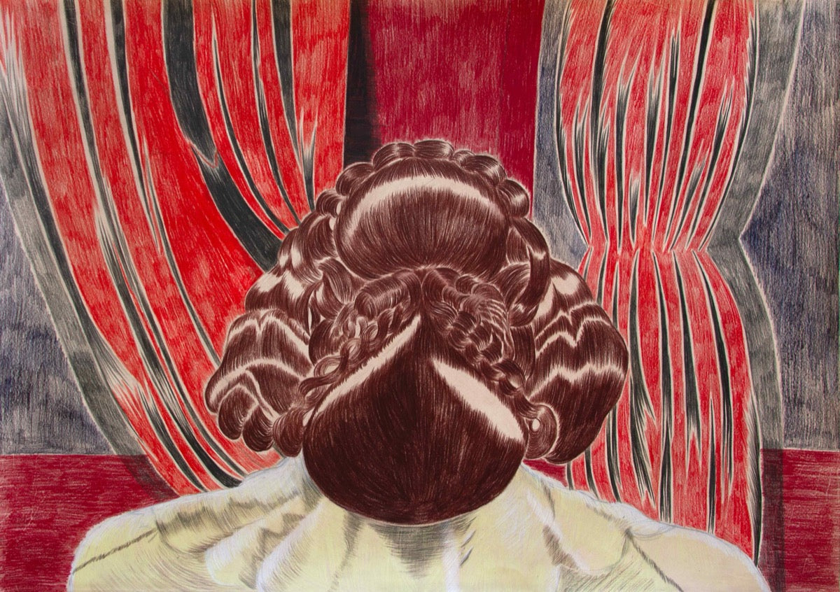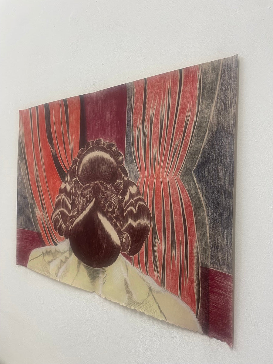 Keziah Mornin is a London-based artist. She uses cinematic devices to frame narratives and reveries from her own life, treading the line between the comedic and the traumatic. Her works serve as fervent depictions of atmosphere and detail and an at times fatalistic humour pervades much of her work. Her drawings are frequently focused on the topography and sensuality of flesh and clothing and through them she questions ideas of femininity and relationships.