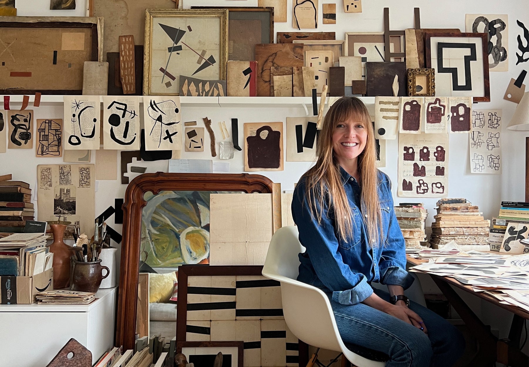 Mixed media artist Lucy Naughton takes inspiration from the collected materials that fill her home. In the sorting and arranging of antique frames, books, and papers, abstract paintings and collages come together in an intuitive way, forming collections that sit happily together or individually. The signs of age and imperfections in the materials used are embraced and make each piece totally unique.