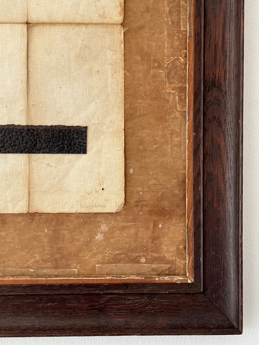 Mixed media artist Lucy Naughton takes inspiration from the collected materials that fill her home. In the sorting and arranging of antique frames, books, and papers, abstract paintings and collages come together in an intuitive way, forming collections that sit happily together or individually. The signs of age and imperfections in the materials used are embraced and make each piece totally unique.