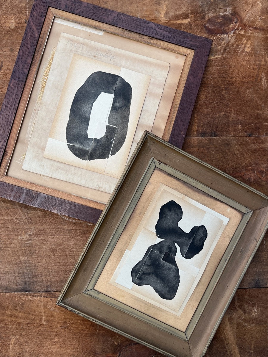 Mixed media artist Lucy Naughton takes inspiration from the collected materials that fill her home. In the sorting and arranging of antique frames, books, and papers, abstract paintings and collages come together in an intuitive way, forming collections that sit happily together or individually. The signs of age and imperfections in the materials used are embraced and make each piece totally unique.