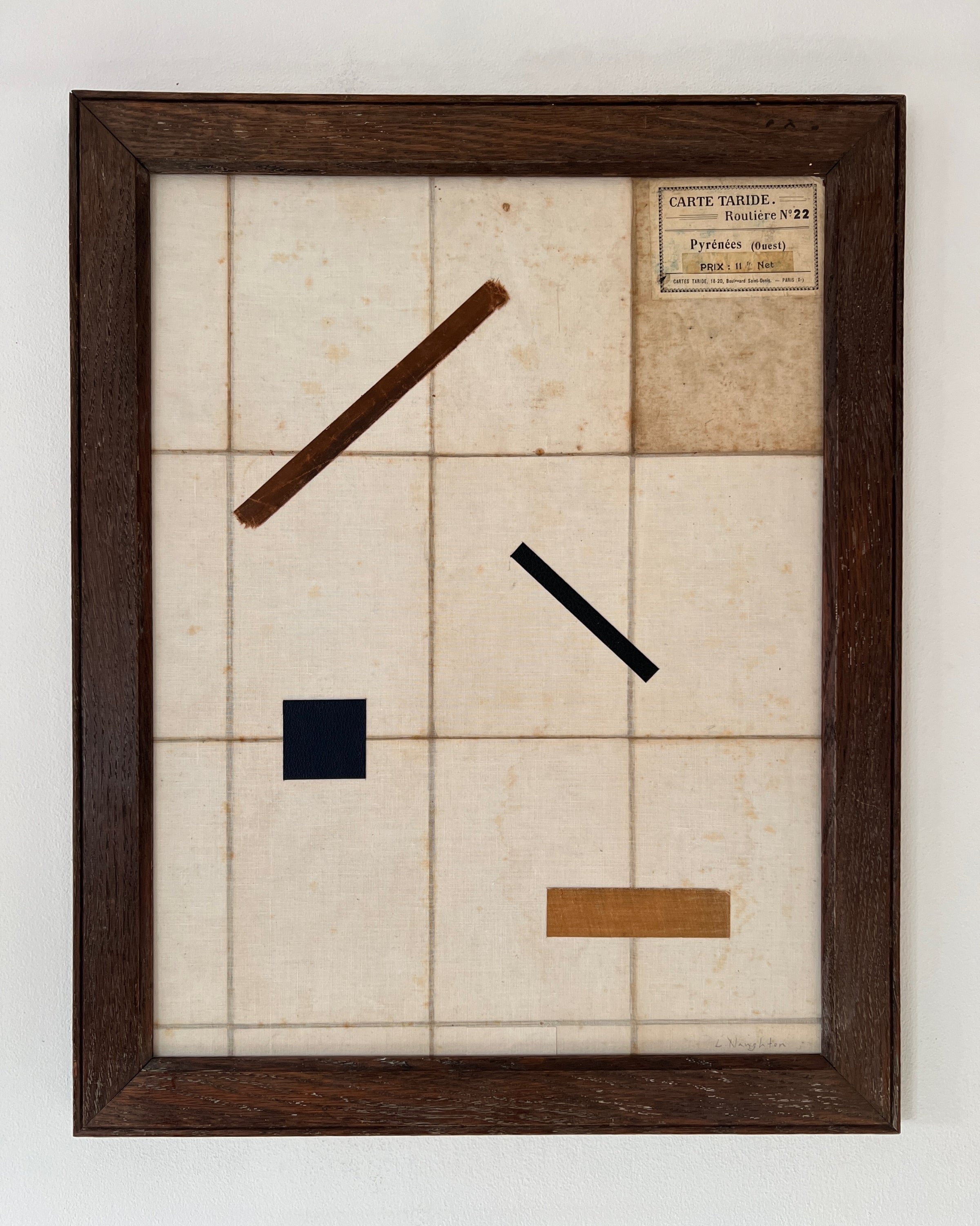 Collage on antique linen-backed French map on panel