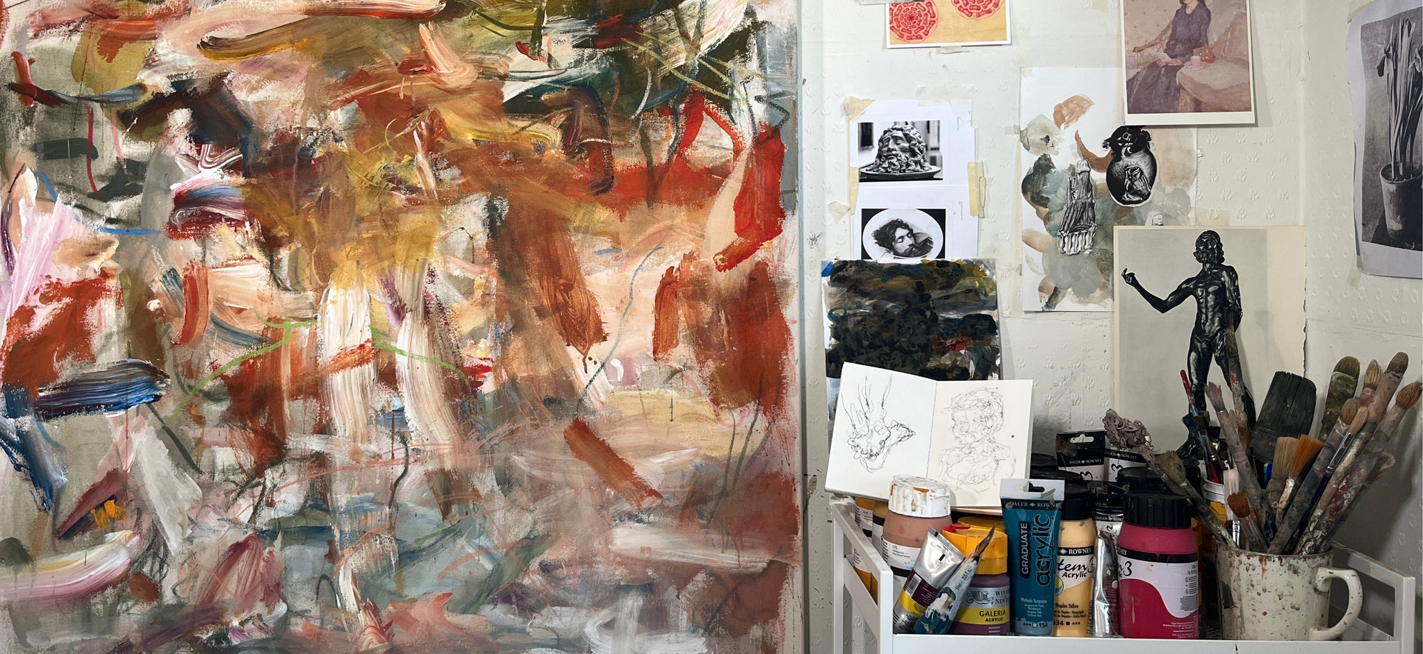 “In my paintings I am interested in weaving together elements of anatomy and botany. The works serve as an explorative mediation of the relationship between growth and chaos, the boundaries between self and environment blur, each painting becomes a landscape to be explored. The vivid and gestural mark making creates potent signifiers, hinting at the underlying dialogue between my lived experiences and the natural world, creating rich tapestries of organic materialities and forms.” - Maarten van den Bos, Autumn Drop 2024