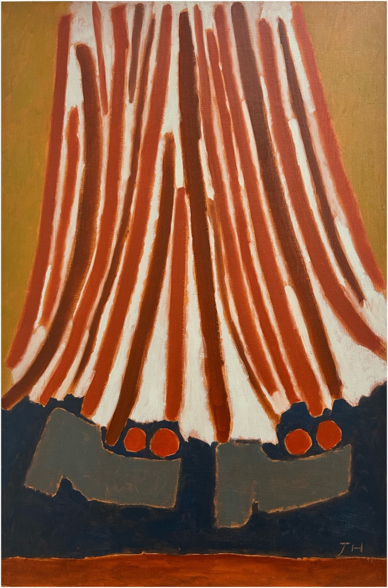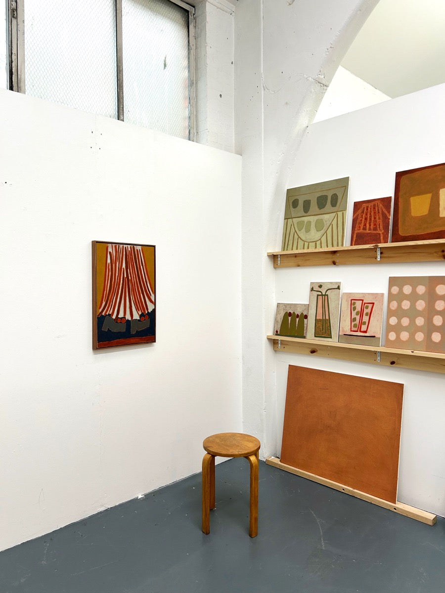 Jay Harper is a British painter based in Bristol, England. Instinctively focused on capturing a feeling, Jay will often use different methods of painting depending on mood. Sometimes painting from a direct reference and other times planning an idea in her mind, and letting that come through in a more free-form spirit. She has a great fondness of muted colour and shape, which are both the foundations of her artworks. Painting with oil onto wood, Jay will often wipe away paint she’s applied to reveal pre-primed colours, playing with the idea of when a work is finished, ever careful to not paint past the feeling.