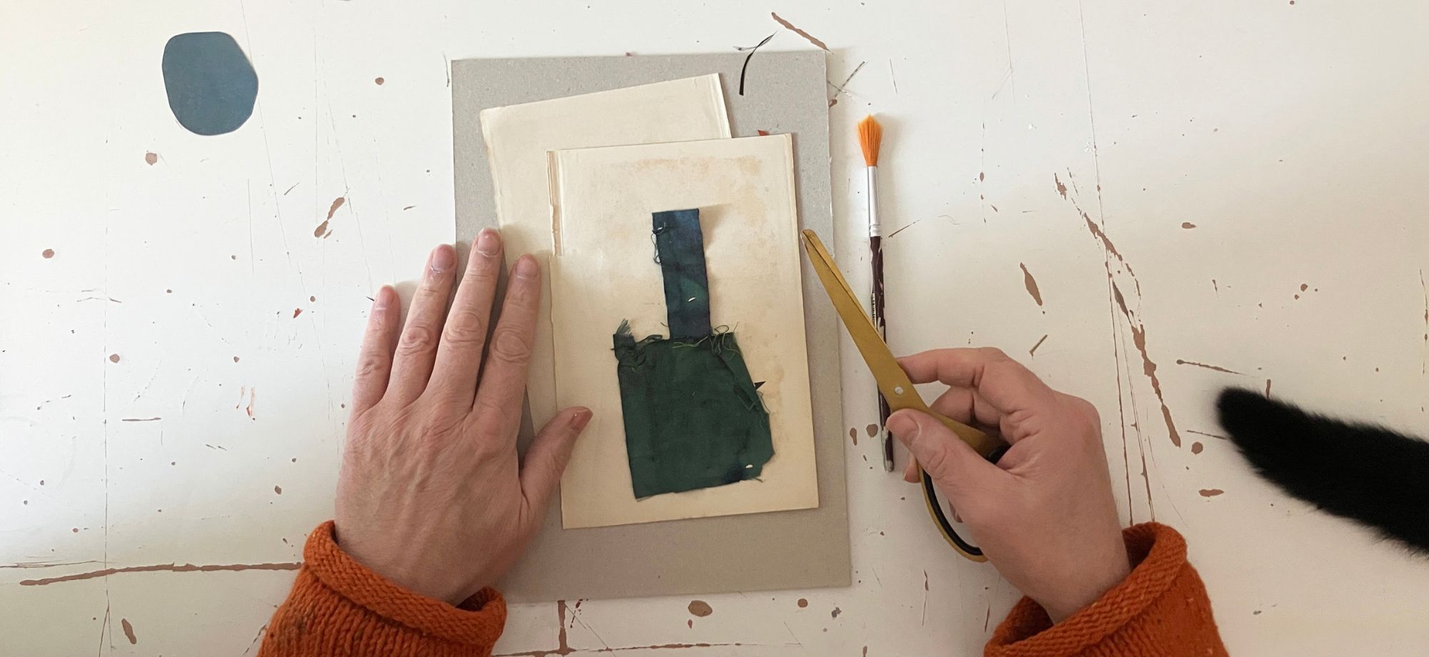 “‘Poetics of Space’ is a collection of small works made on cloth bound vintage book covers. The process of their making is like a journey through an inner life, with images evolving by finding and making many and varied connections. These might originate in the title of a book, or marks of wear on a cover, or the atmosphere of a particular colour.” - Matthew Richardson