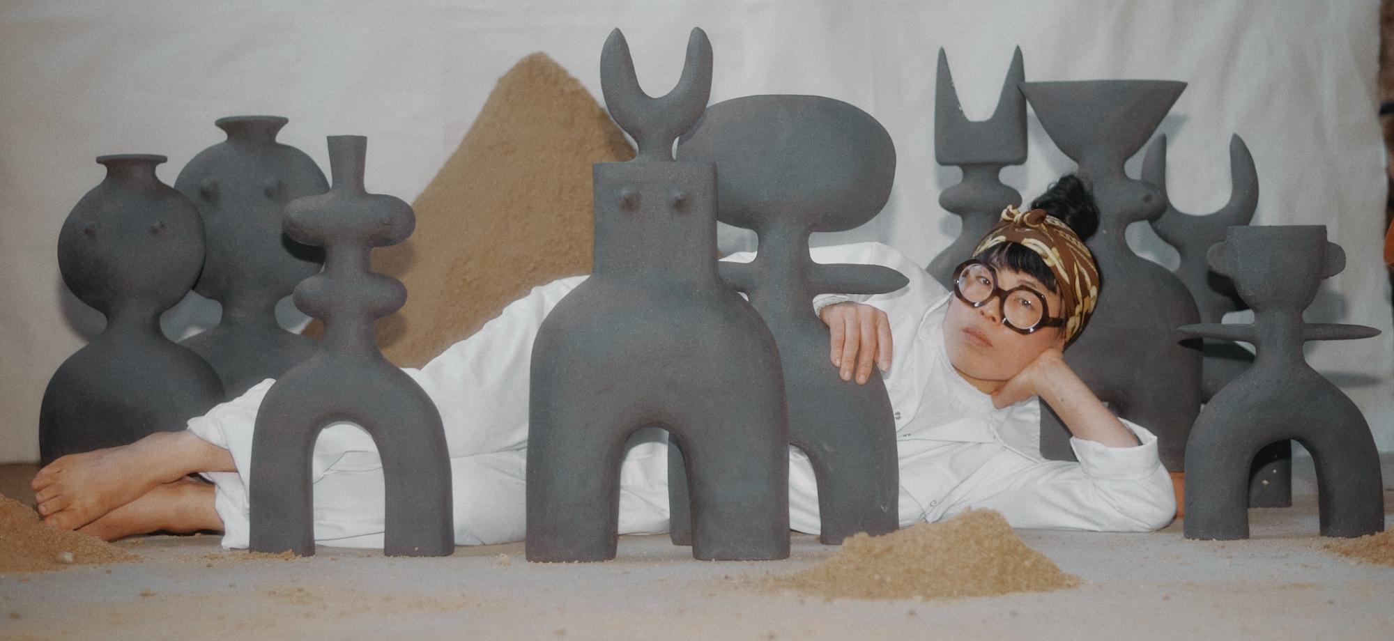 She’s known for playful sculptural work that takes the form of functional wares. Her pieces mix child-like simplicity with contemporary sophistication, and incorporate her background in Fine Art and design with her cultural heritage.