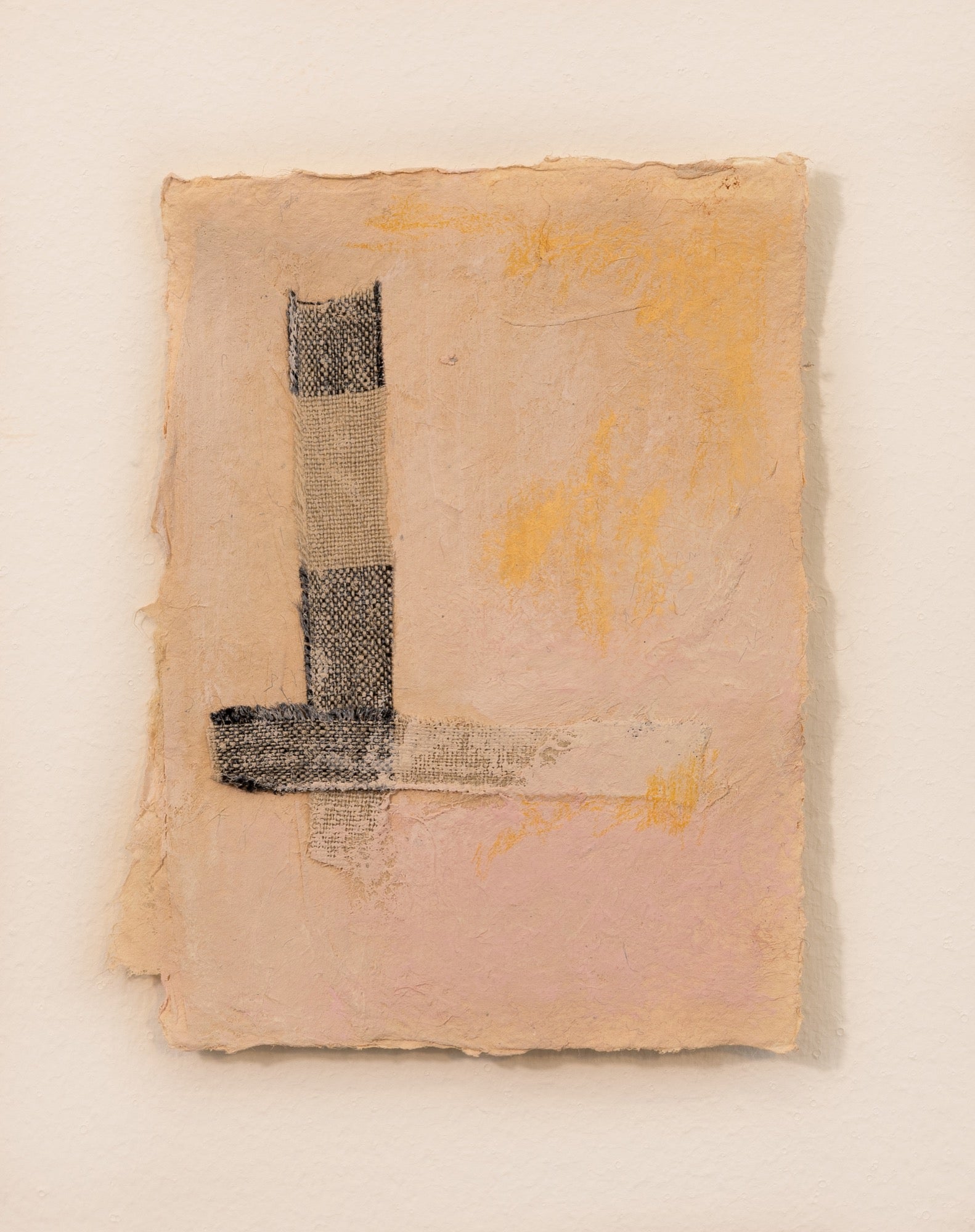 textile, paper, acrylic, pastel, coloured pencil on paper