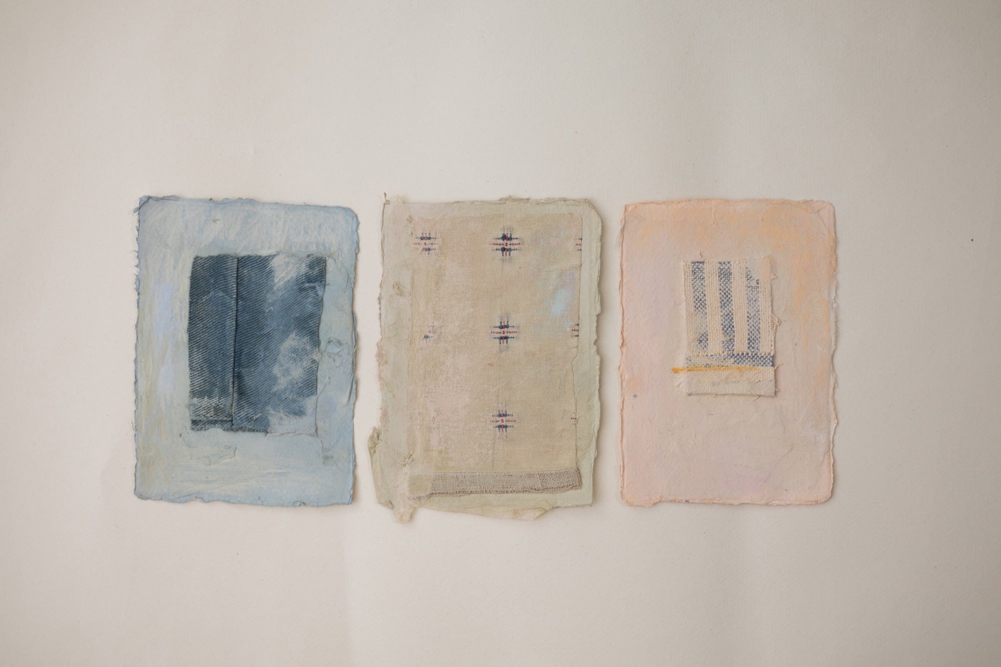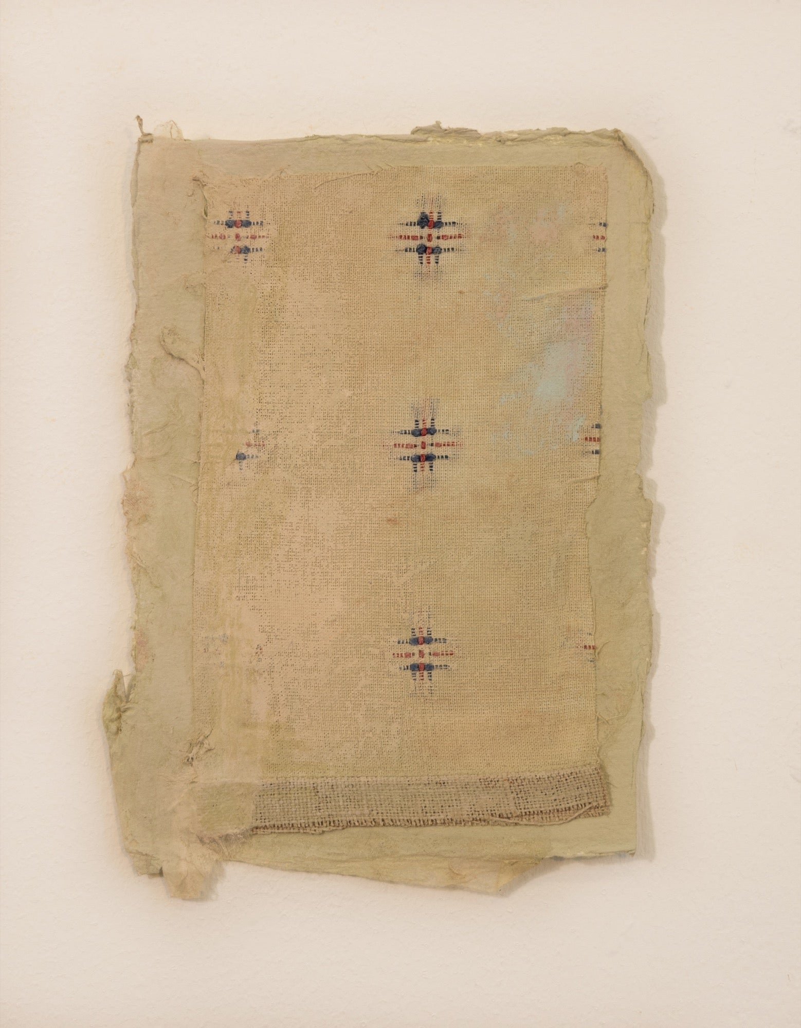 textile, paper, acrylic, pastel, coloured pencil on paper