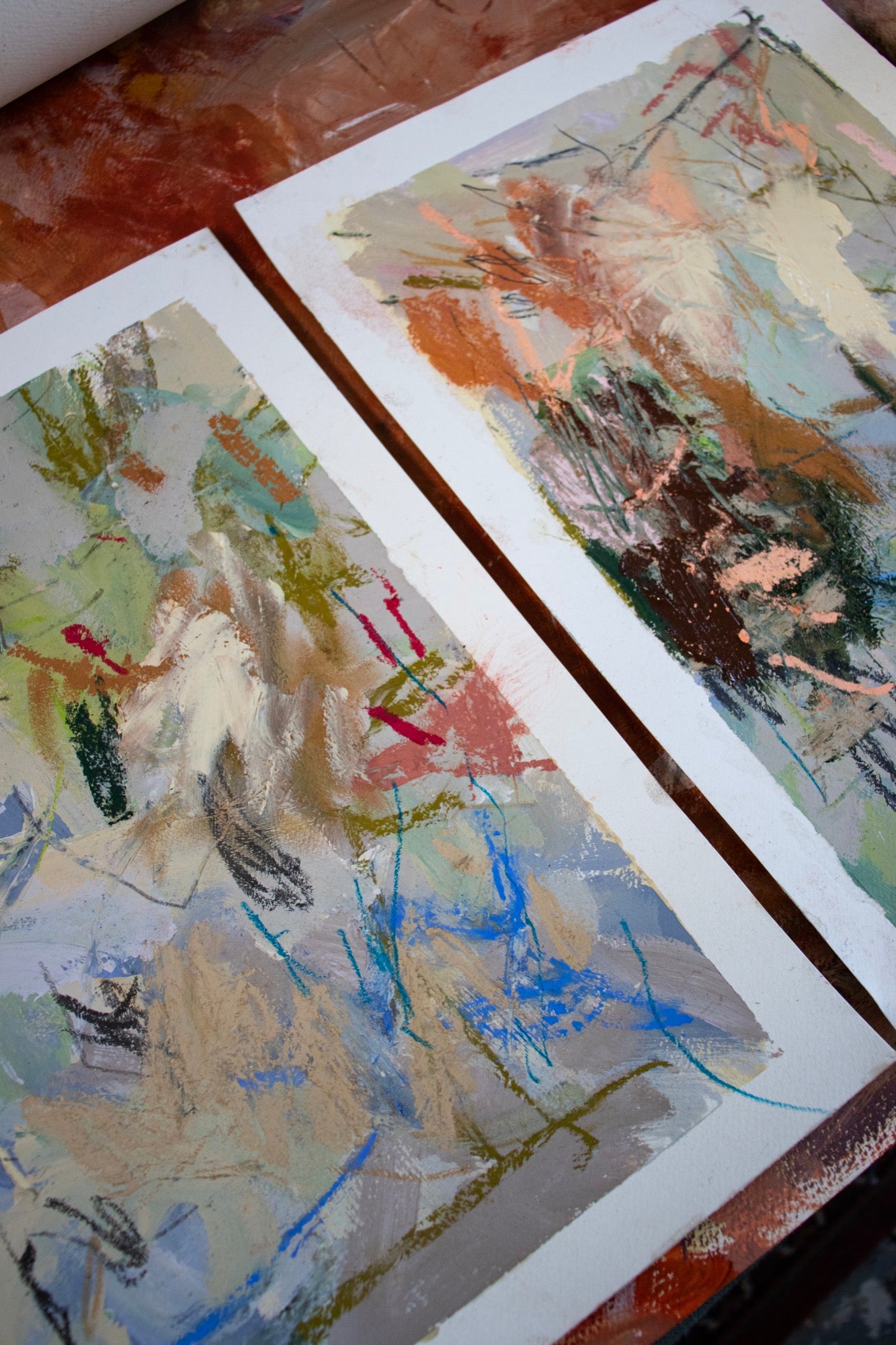 Acrylic, oil, oil stick on linen