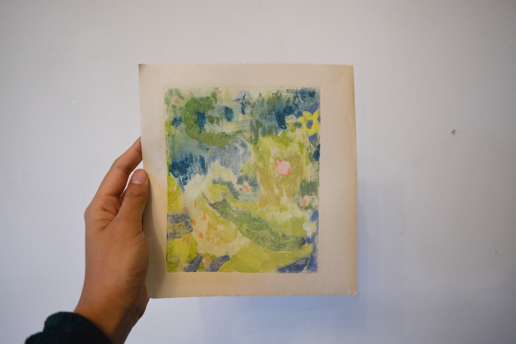 Bethenie Carriaga (b.2001) is an artist from Yate, Bristol and the Philippines. Through paintings, prints, and collages, Bethenie explores themes of home, belonging, and the cyclical process of growing up.