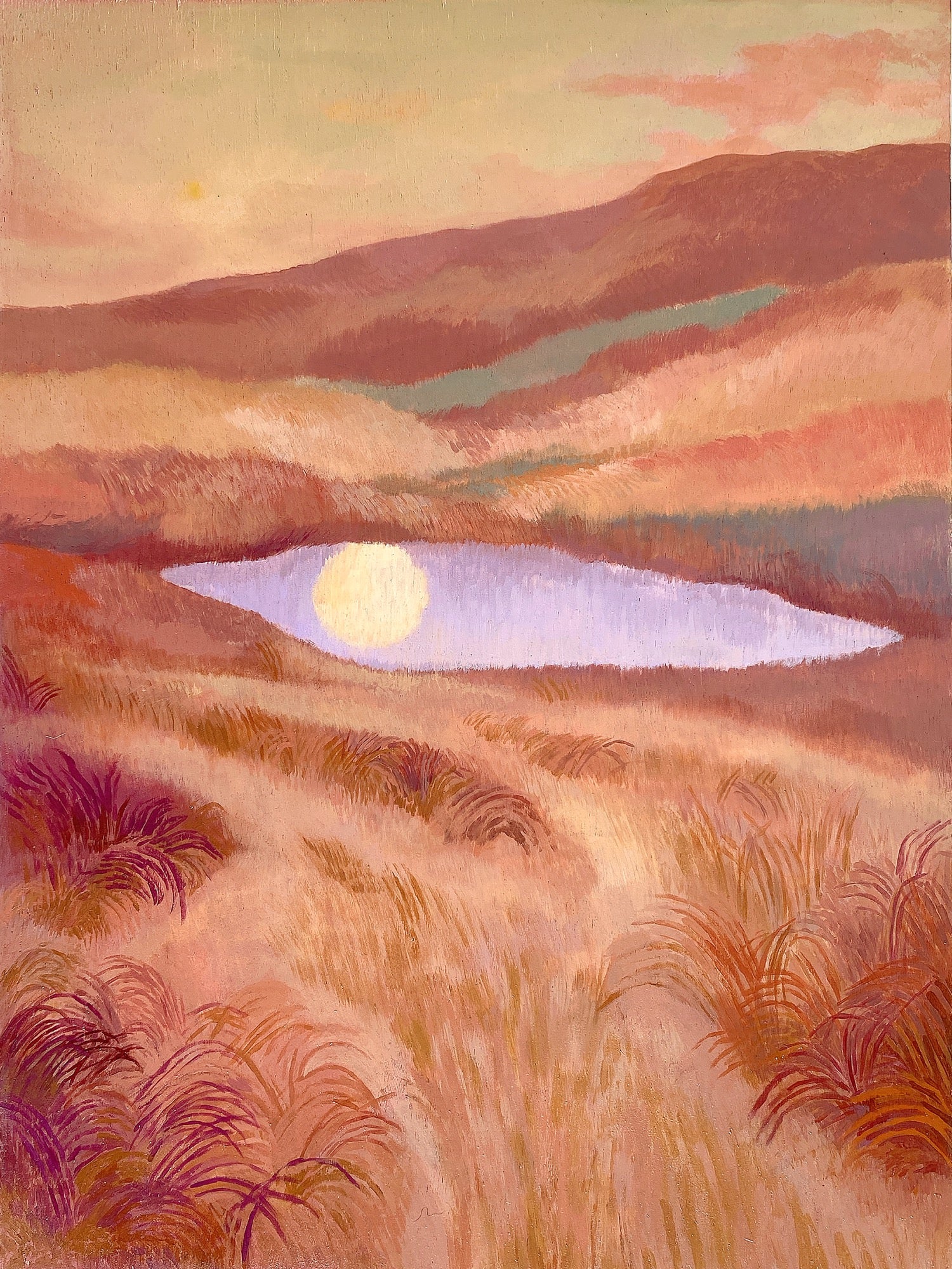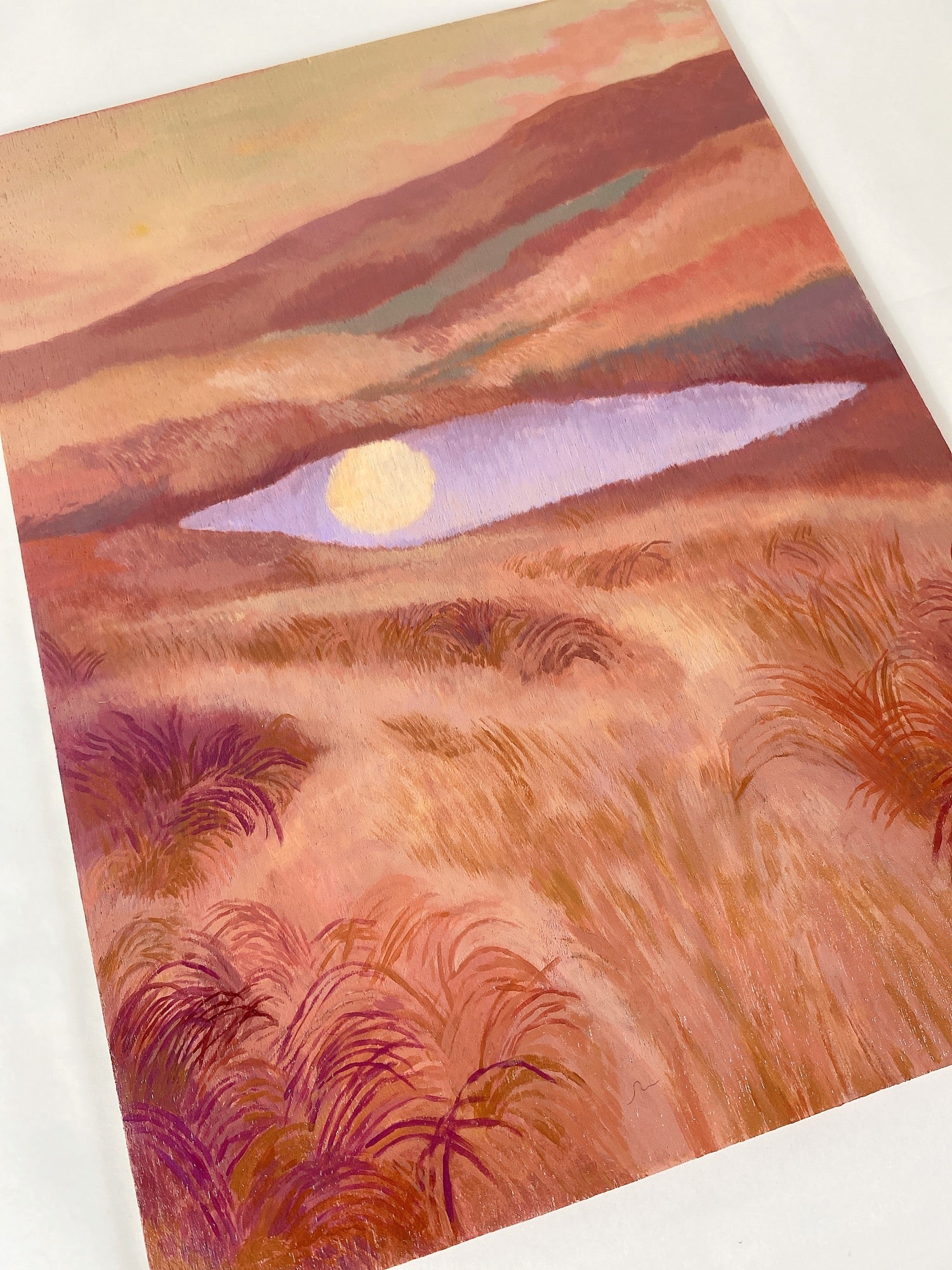 “Nature has always been a muse in my works; the mountain and the sky, the trees and the moon. These elements are frequent collaborators in my exploration. Then comes the chairs, as these new kids on the block. I have piles of baking paper that are dedicated to sketches of chairs. Though I love to capture a setting, a moment, and tones, it also becomes fundamental to infuse a narrative into my work. The imagined narrative is what amused me to explore more into their world." — Ifada Nisa