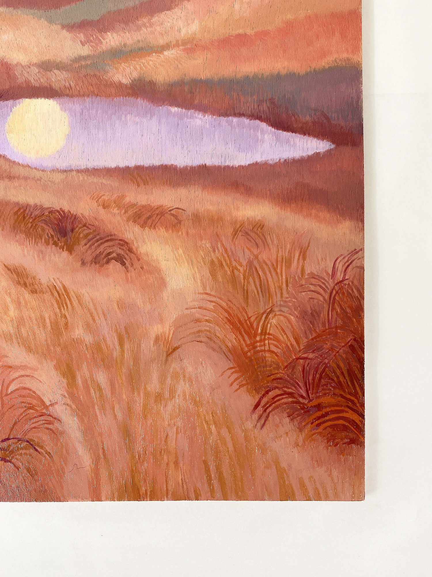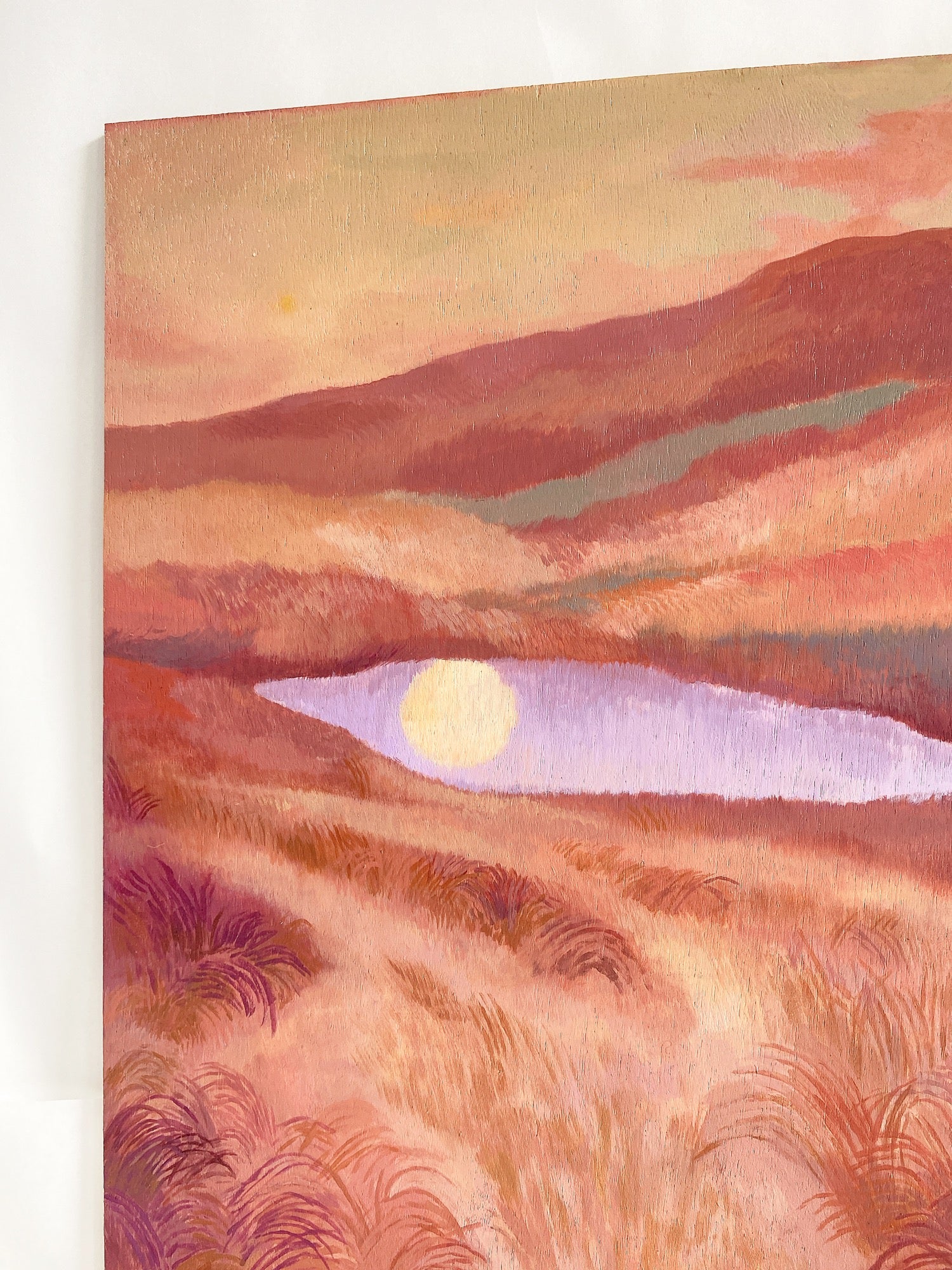 Ifada Nisa is a self-taught artist based in Indonesia. Her degree in Architecture has shaped how she views spaces, both literally and metaphorically. Chairs and landscapes feature as the two predominant subjects in her work, both signifying a space inhabited by humans. The two interweave to create a setting that echoes the stillness and emptiness of spaces, capturing a moment that is made by humans, lived by humans and then left by humans too. She sees her work as a tool to communicate with her inner world and relay to the viewer through the means of storytelling.