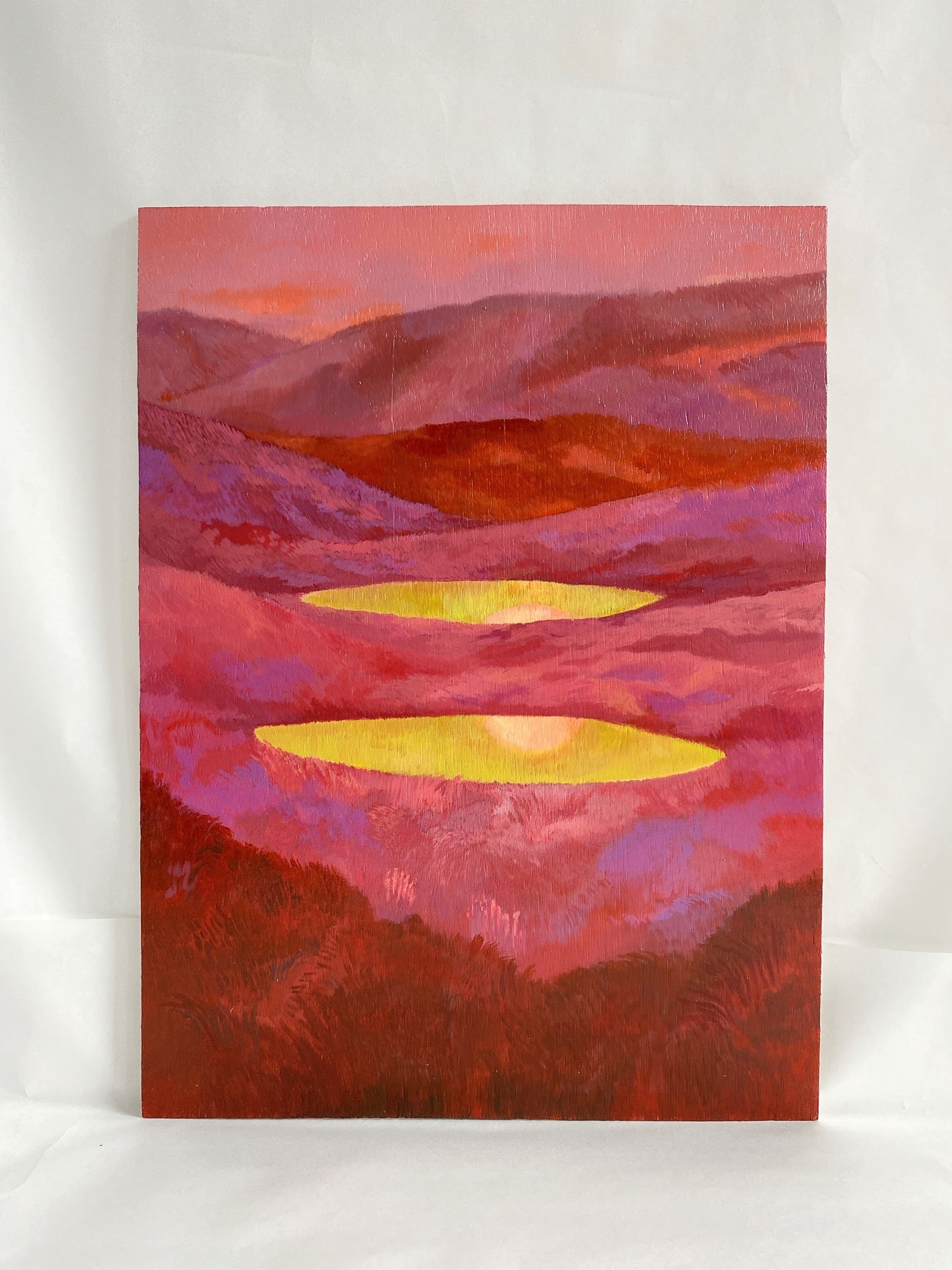 Ifada Nisa is a self-taught artist based in Indonesia. Her degree in Architecture has shaped how she views spaces, both literally and metaphorically. Chairs and landscapes feature as the two predominant subjects in her work, both signifying a space inhabited by humans. The two interweave to create a setting that echoes the stillness and emptiness of spaces, capturing a moment that is made by humans, lived by humans and then left by humans too. She sees her work as a tool to communicate with her inner world and relay to the viewer through the means of storytelling.