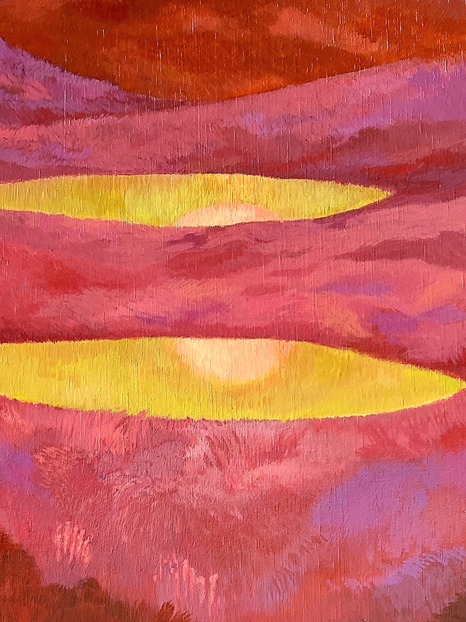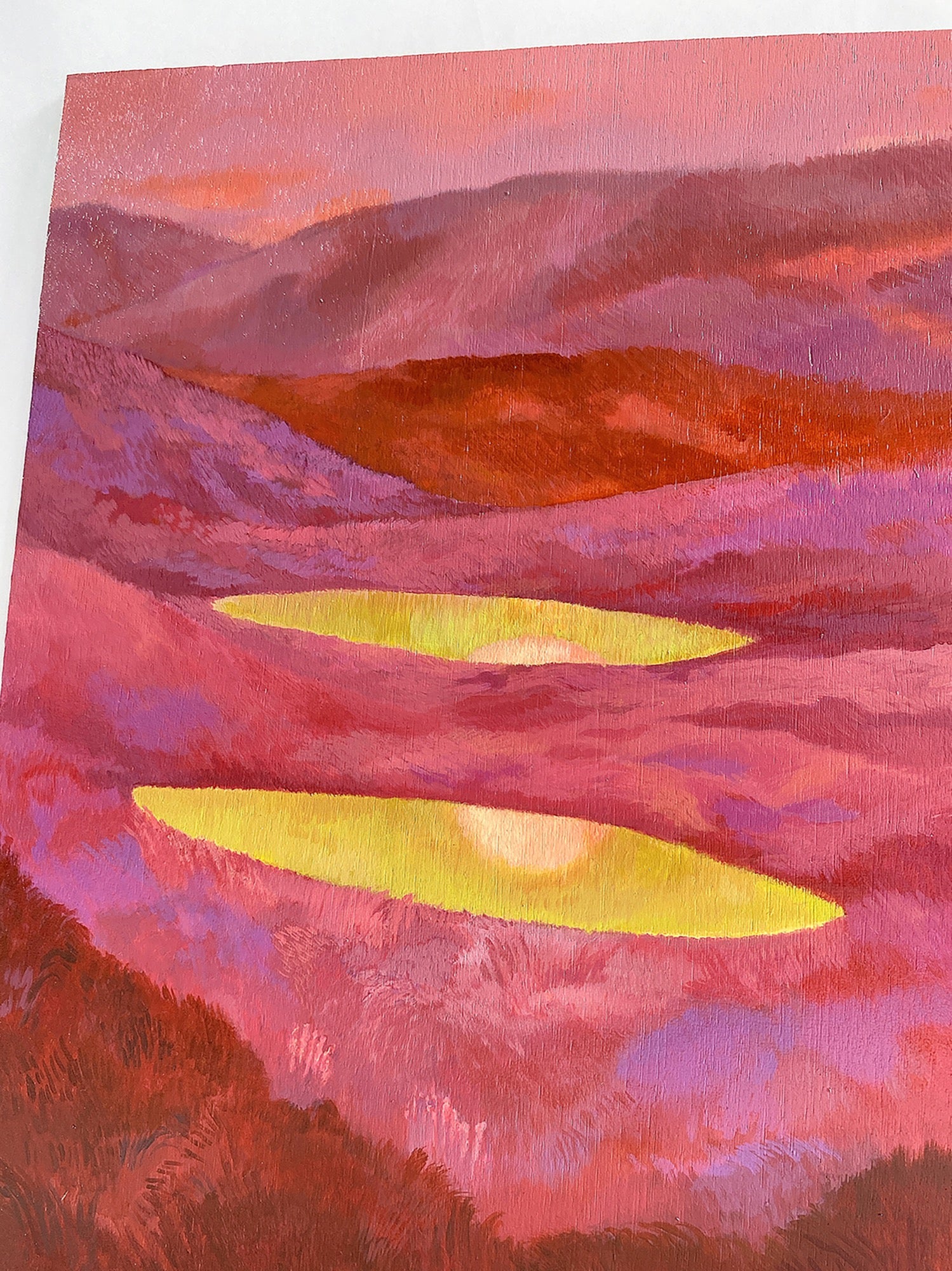 “Nature has always been a muse in my works; the mountain and the sky, the trees and the moon. These elements are frequent collaborators in my exploration. Then comes the chairs, as these new kids on the block. I have piles of baking paper that are dedicated to sketches of chairs. Though I love to capture a setting, a moment, and tones, it also becomes fundamental to infuse a narrative into my work. The imagined narrative is what amused me to explore more into their world." — Ifada Nisa