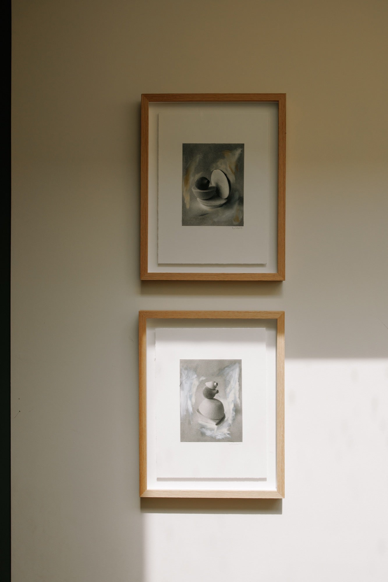 Ines Fernandez de Cordova’s multidisciplinary practice unfolds across several stages, grounded in the sculptural forms she creates using plaster or jesmonite. These works act as entry points into uncanny, imagined scenes. She embraces the delicate and often unstable nature of her sculptures, using repetition and collage to imply movement, while her printmaking practice serves to arrest that motion, fixing each composition in time.