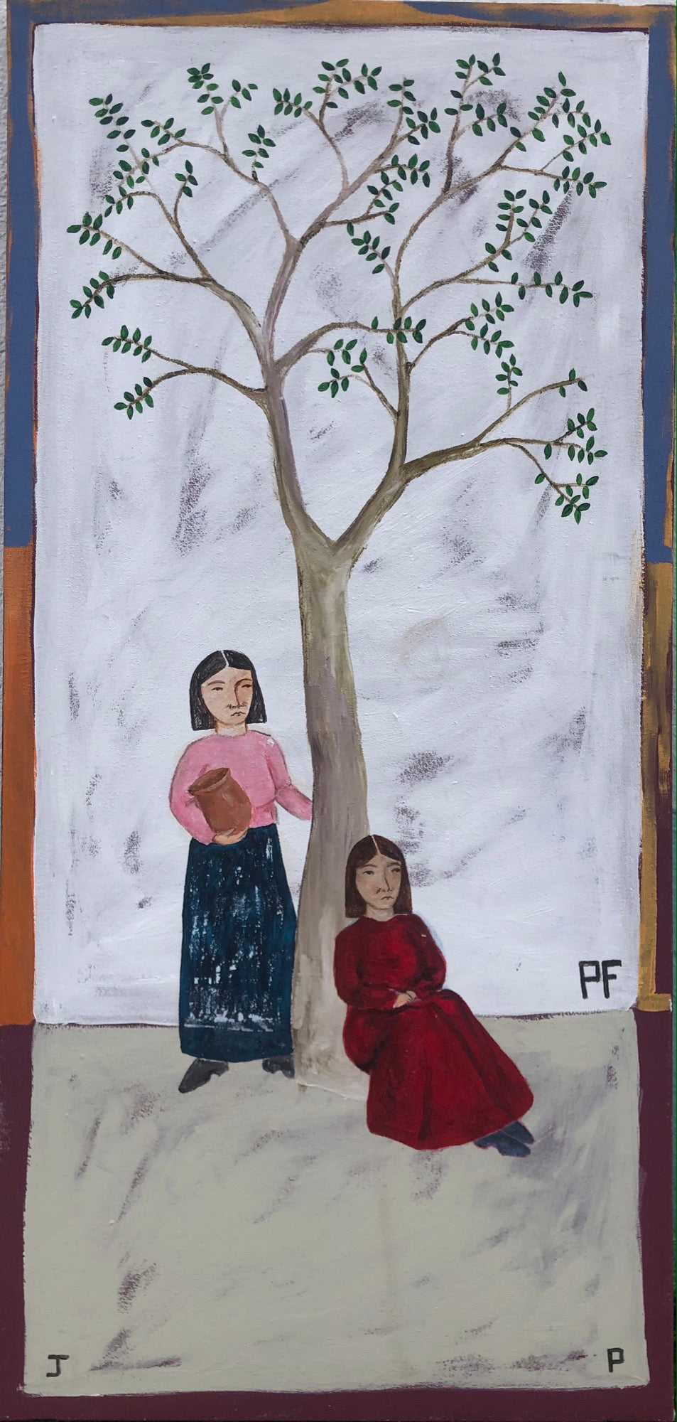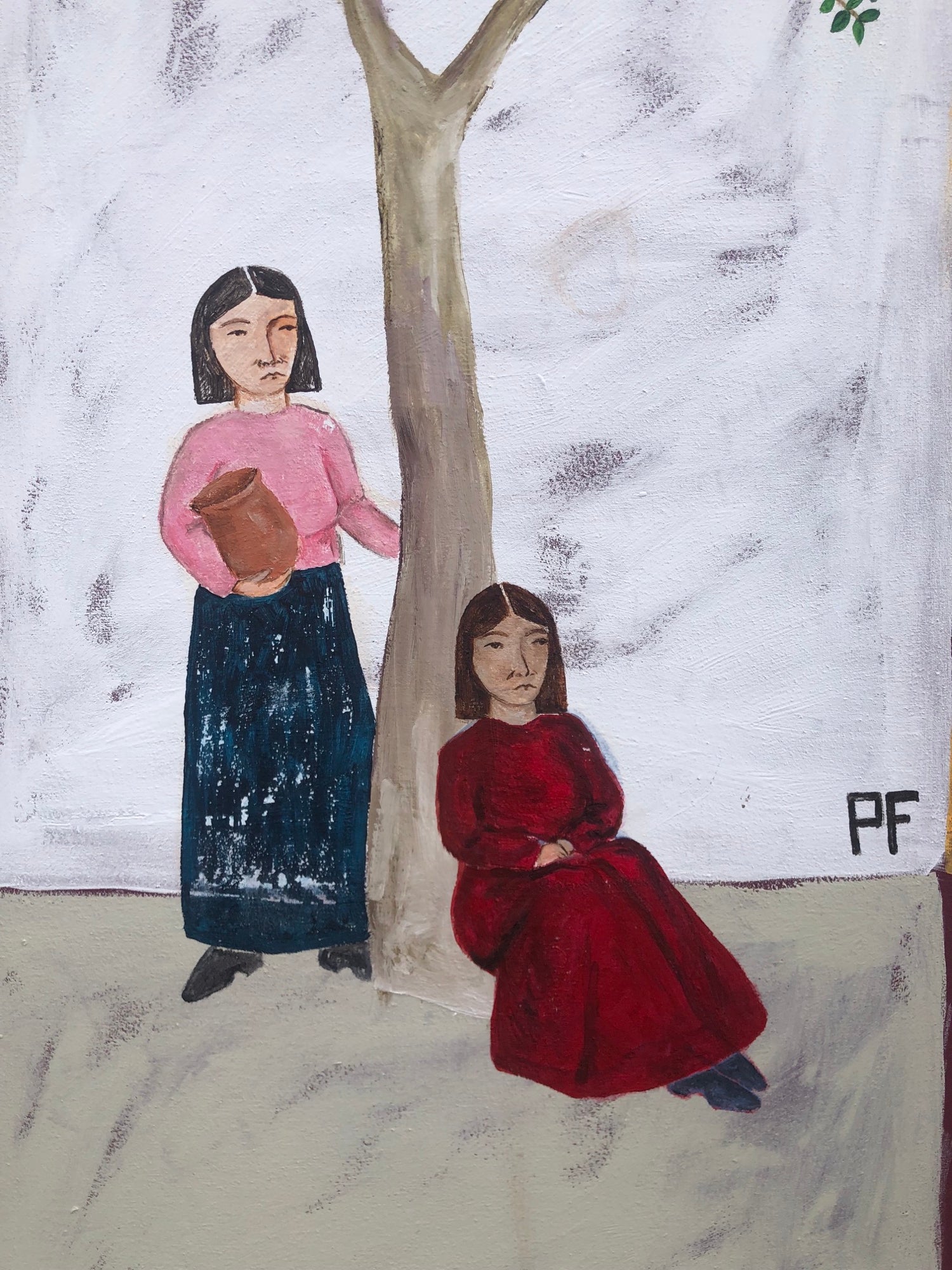 A myriad of abstracted visual references taken from all over the world merge into the painter’s imagined scenes, leaving us with a diverse yet distinctive painted universe, generally void of any factual representation of a certain geographical location or people, rather creating a unique painted universe within itself.