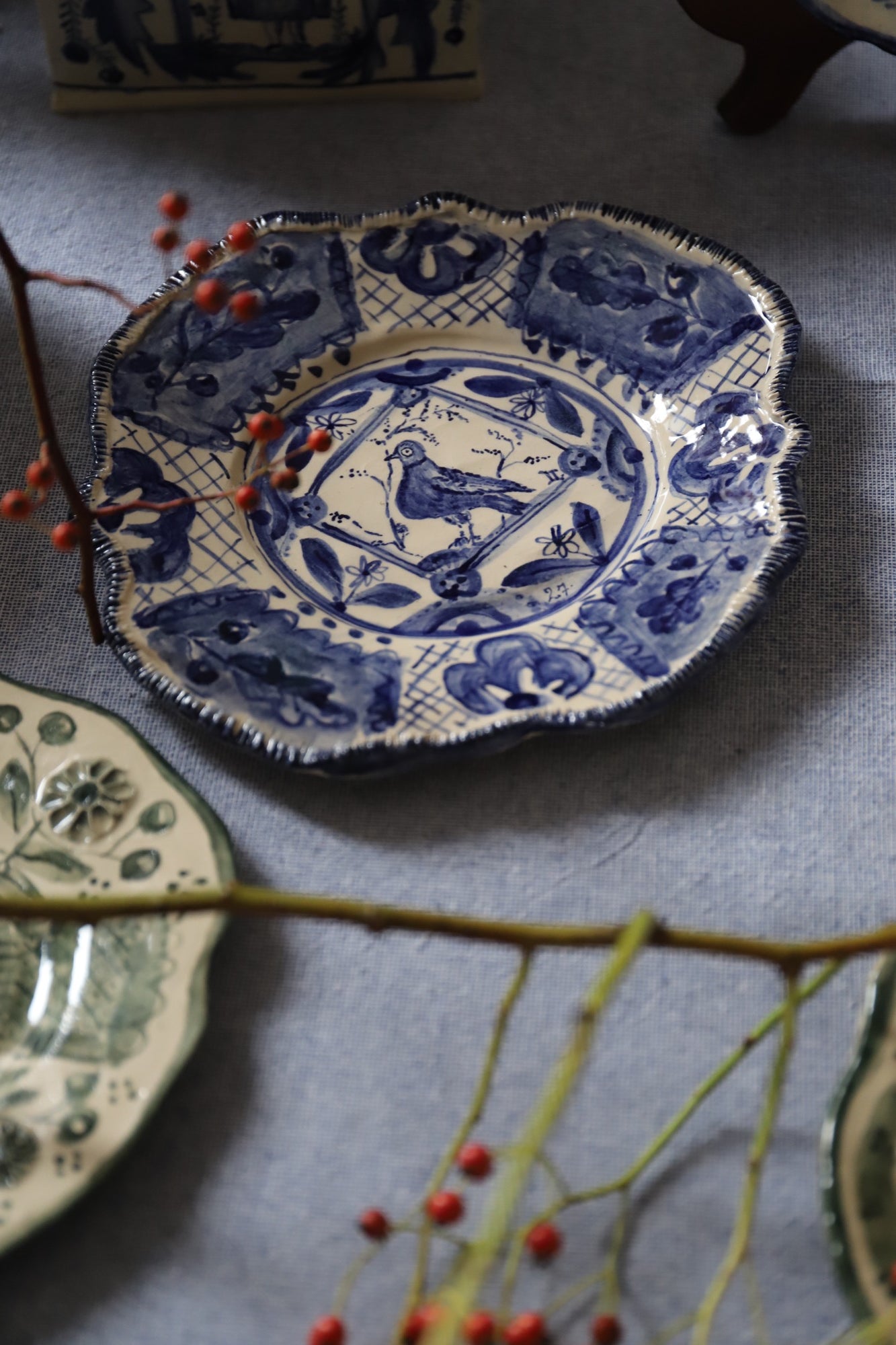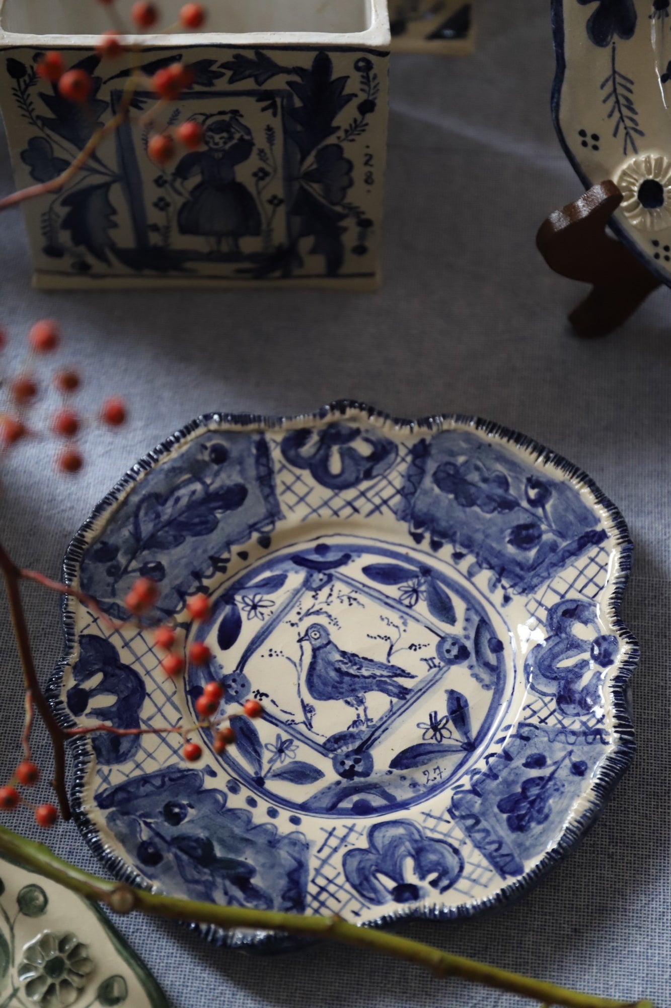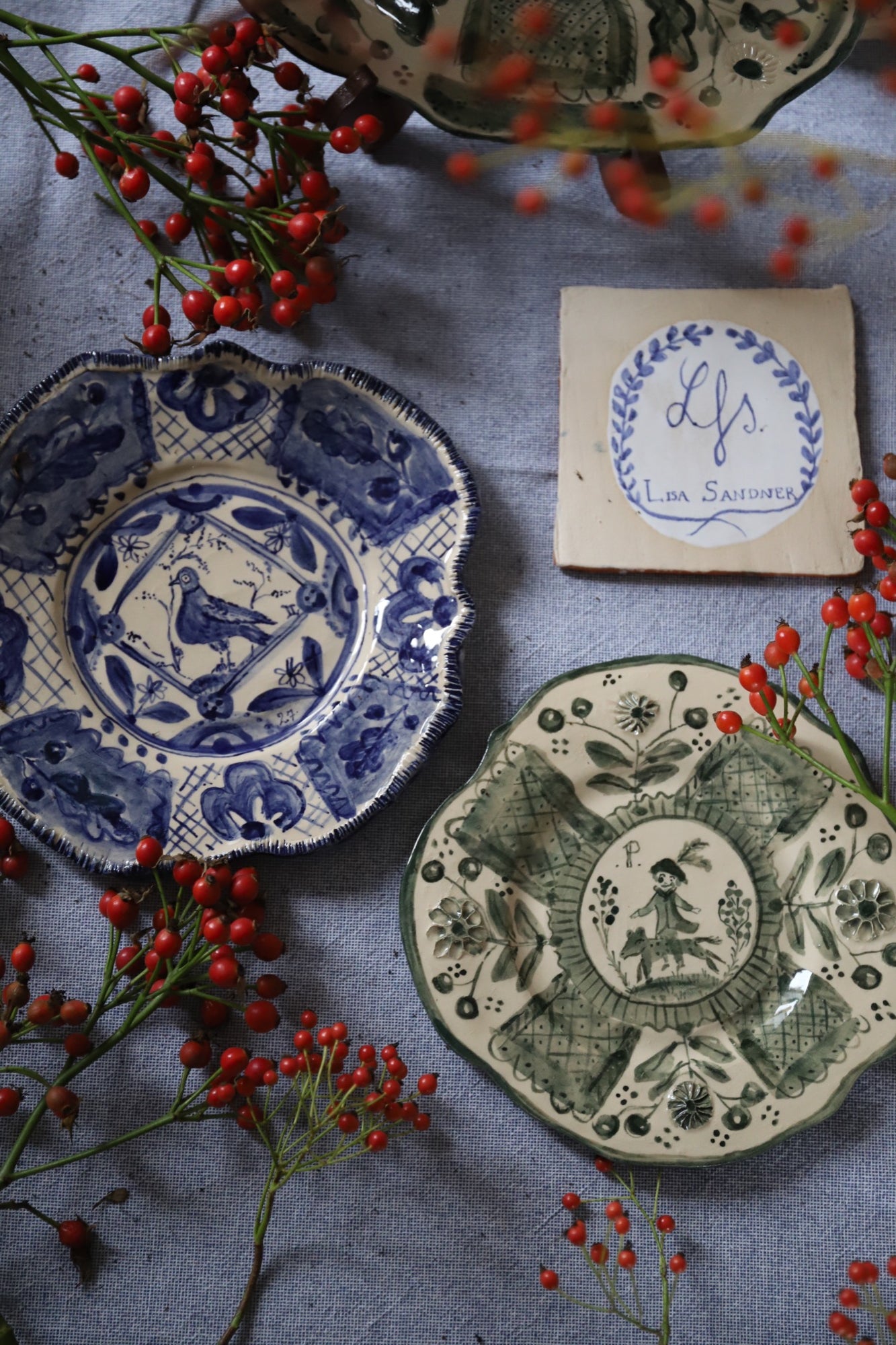 Lisa Sandner is a self-taught artist and ceramicist based in Münster, Germany. Her pieces are not focused on seeking perfection but on catching the beauty in a trace from the past and imagining a story that could have been. Her work is born by chance. It can be sparked by the beauty of an old tile in a hallway or a faded painting on a wooden chest. Curious of they way they were made and where they came from, she researches and tries to feel their time and universe.