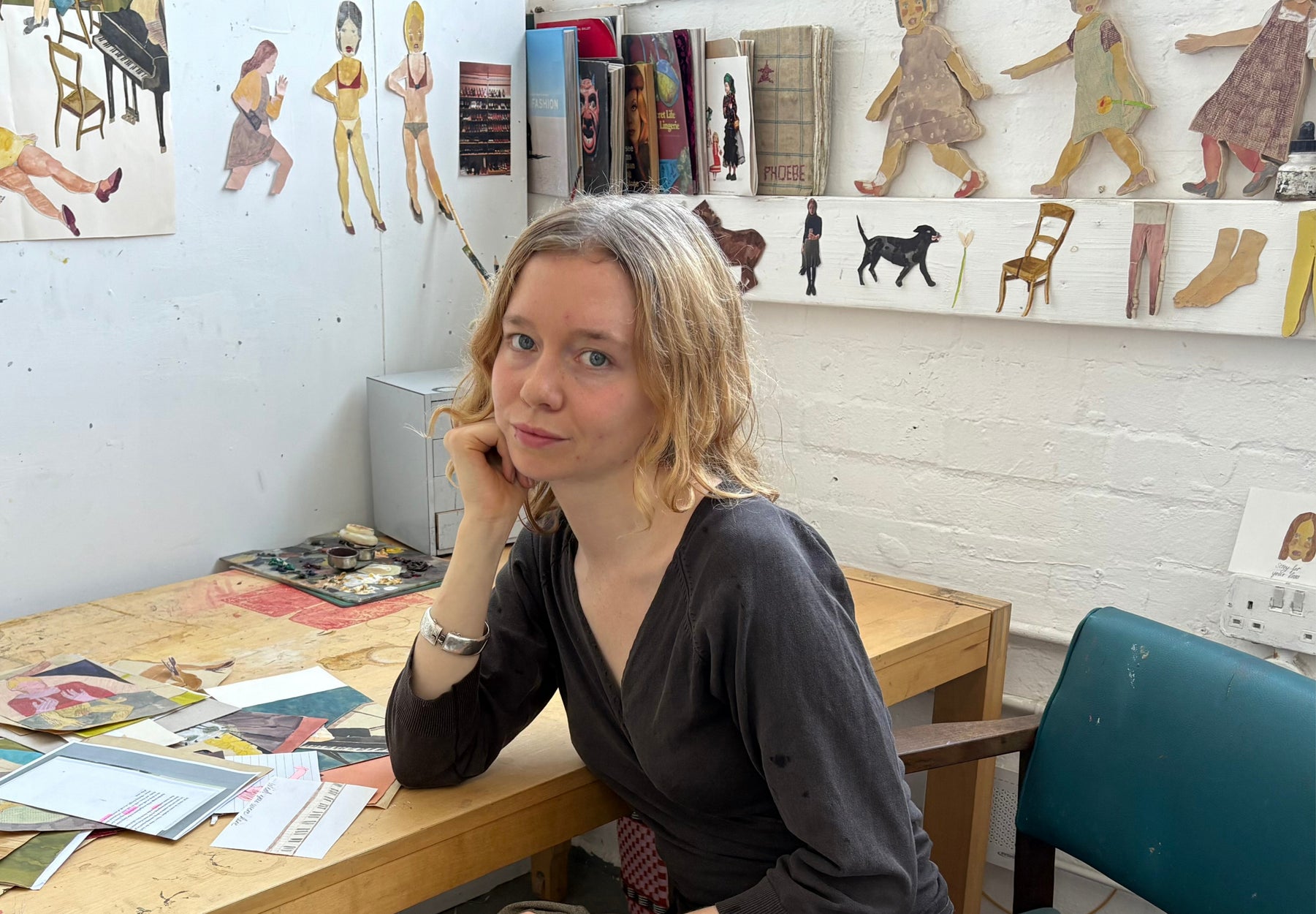 Phoebe graduated from Chelsea College of Art with a specialism in embroidery. Rooted in her background in textiles, her collage process mirrors embroidery through its use of patchwork and piecing together fragments into something whole.