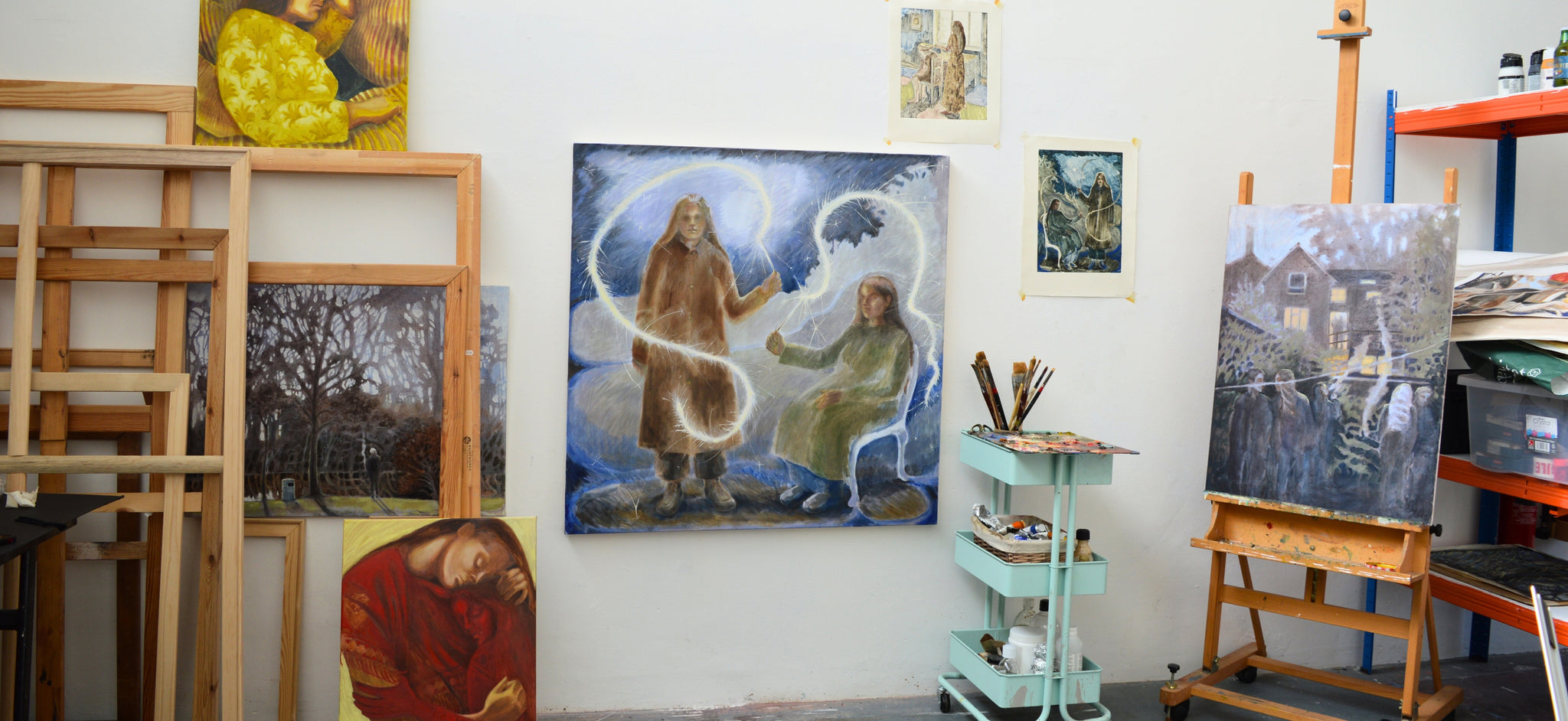 Through drawing I gather observations and memories to form transient scenes that traverse the boundary between the physical world and that which lies beyond it. I develop these sketches and drawings into larger, mixed-media figurative works and paintings in acrylic and oil.