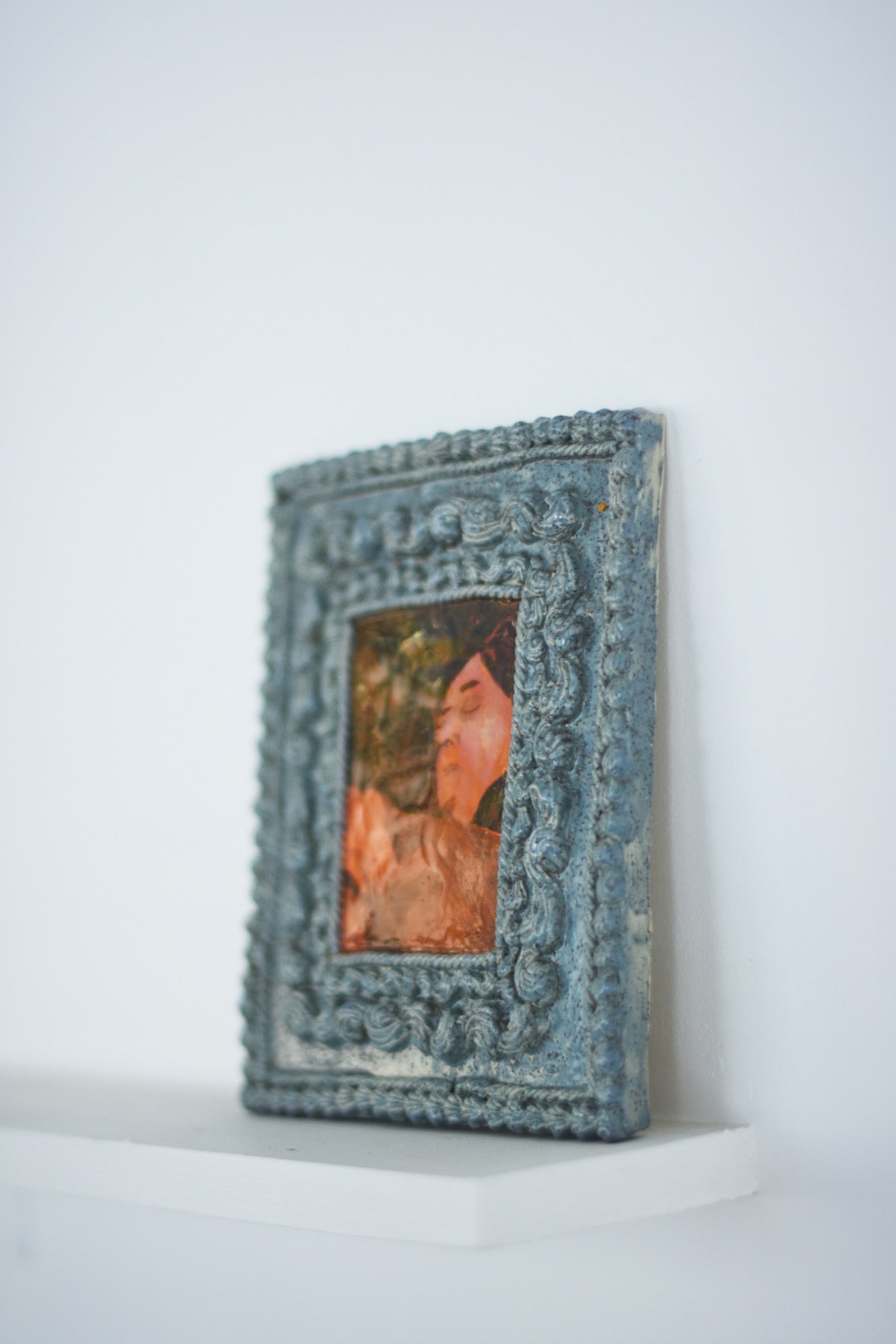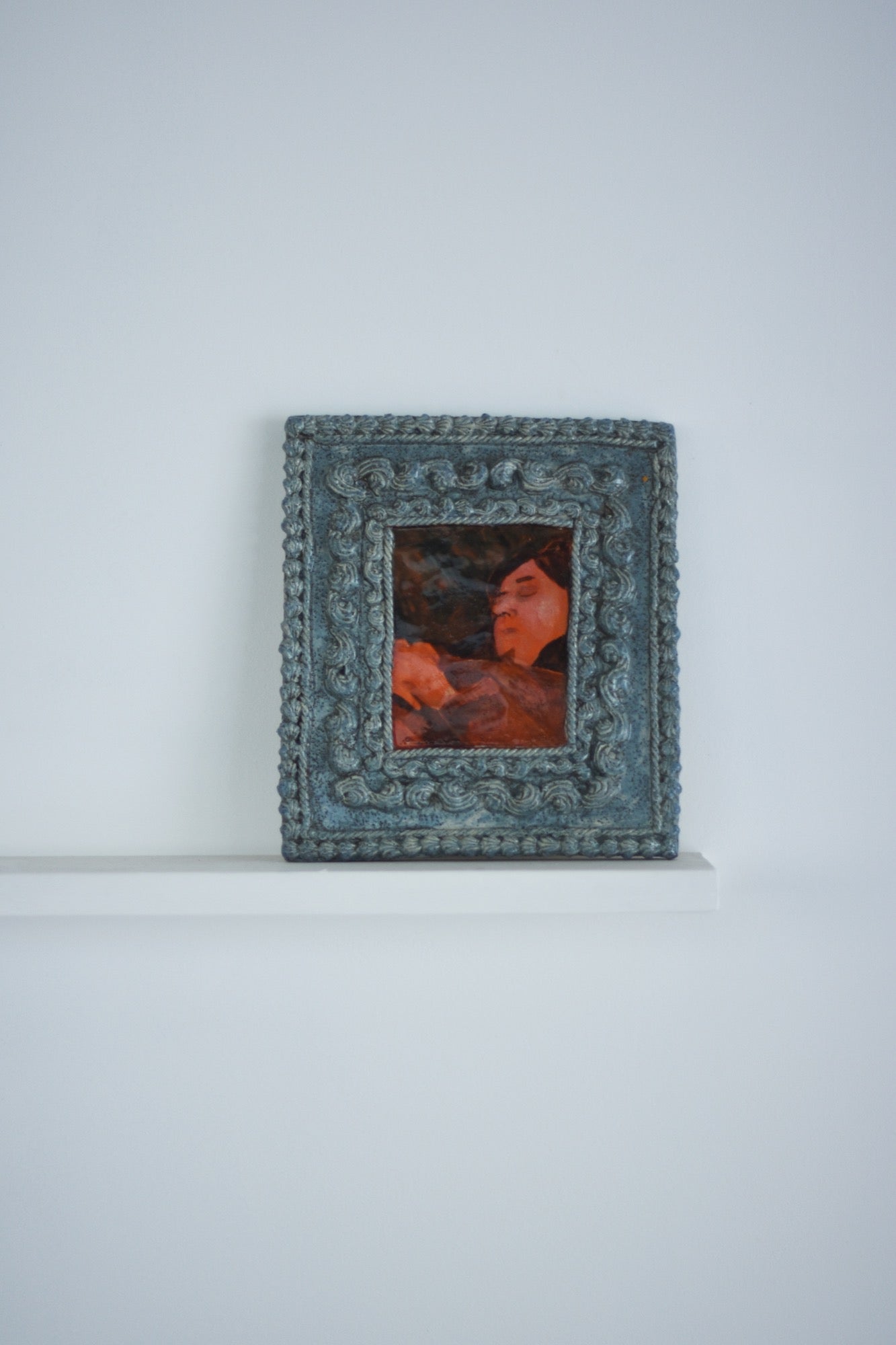 Samantha Kerdine lives and works in Paris. Working most often from personal photographs, her practice draws on everyday life and its banality as inexhaustible sources of inspiration. From these intimate archives, she extracts intensity and poetry, revealing a subtle balance between humour and melancholy. In an era of image immediacy, she creates her own supports to paint on, using them as a renewed form of visual diary. Shiny, tactile, and colourful, these often autobiographical images transform the ordinary into something desirable, seeking to freeze fleeting moments and retain what continuously slips away.