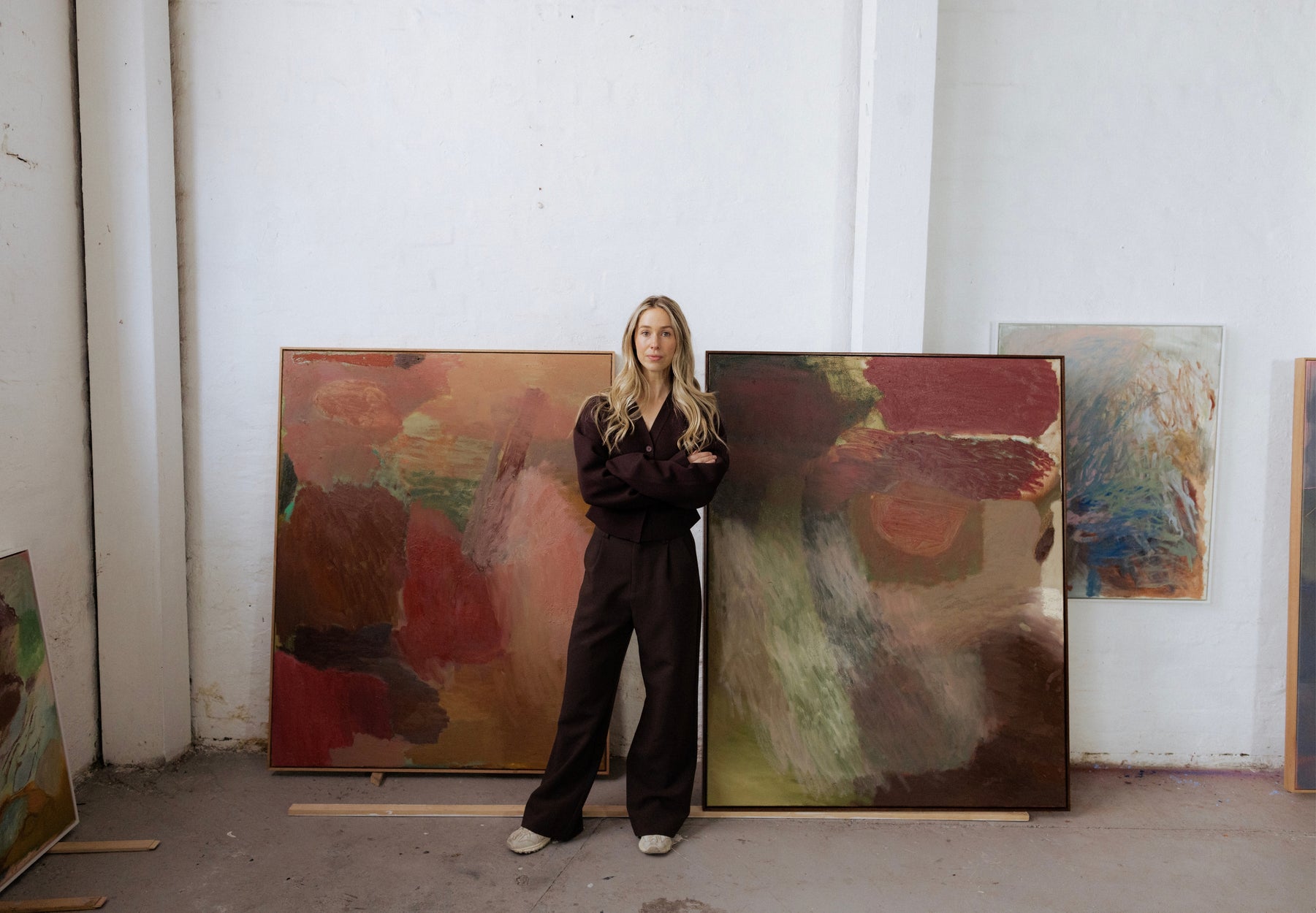 “For me, colour has always been a kind of language. Certain tones arrive in my work almost without permission, and they often uncover feelings I didn’t know I had, or that I didn’t want to say out loud. My paintings are where I work through those things, the push and pull of being a woman, the demands of motherhood, the longing for freedom. I build them up with layers of paint, oils, scraps of paper, even sand or gravel, until they feel textured and raw enough to hold what I’m trying to express. My work is a deeply personal summary of how I interpret being a woman and what it means to carry heavy thoughts. It’s a place where I find both release and recognition.” - Sara Winfield