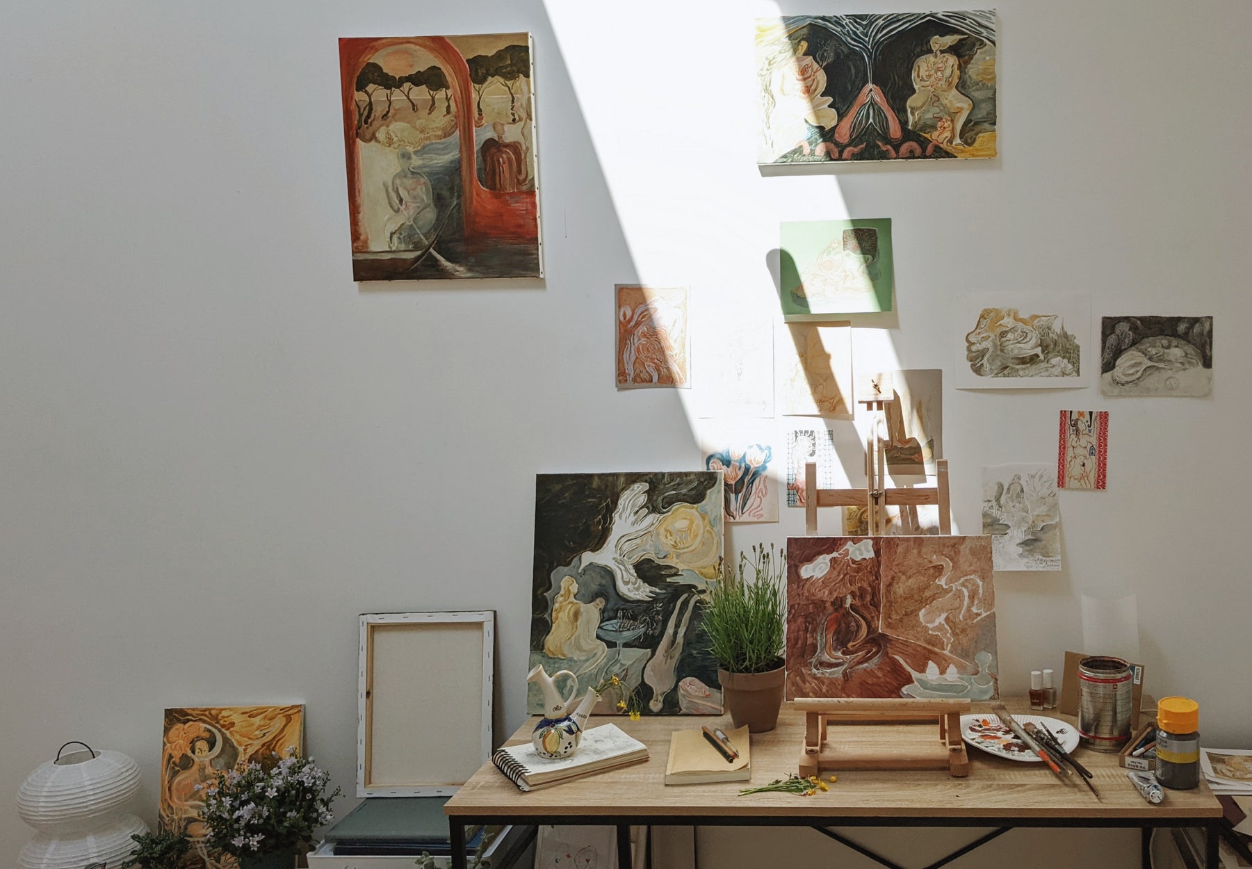Shaoyu has always been sensitive towards her own and others’ mental states, and is fascinated with dreams and their metaphors. After studying a bit of Jungian psychology in university, painting also became an oracle reading between her conscious and subconscious minds.