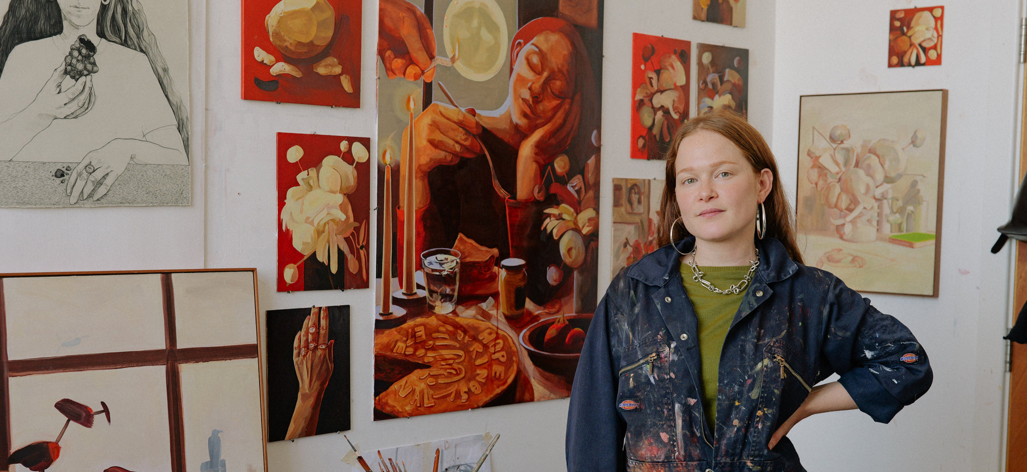 "Using bodily & vibrant colours to render still lives and portraits layered with symbolism, I explore themes of seasonal ritualism, caregiving and women.”