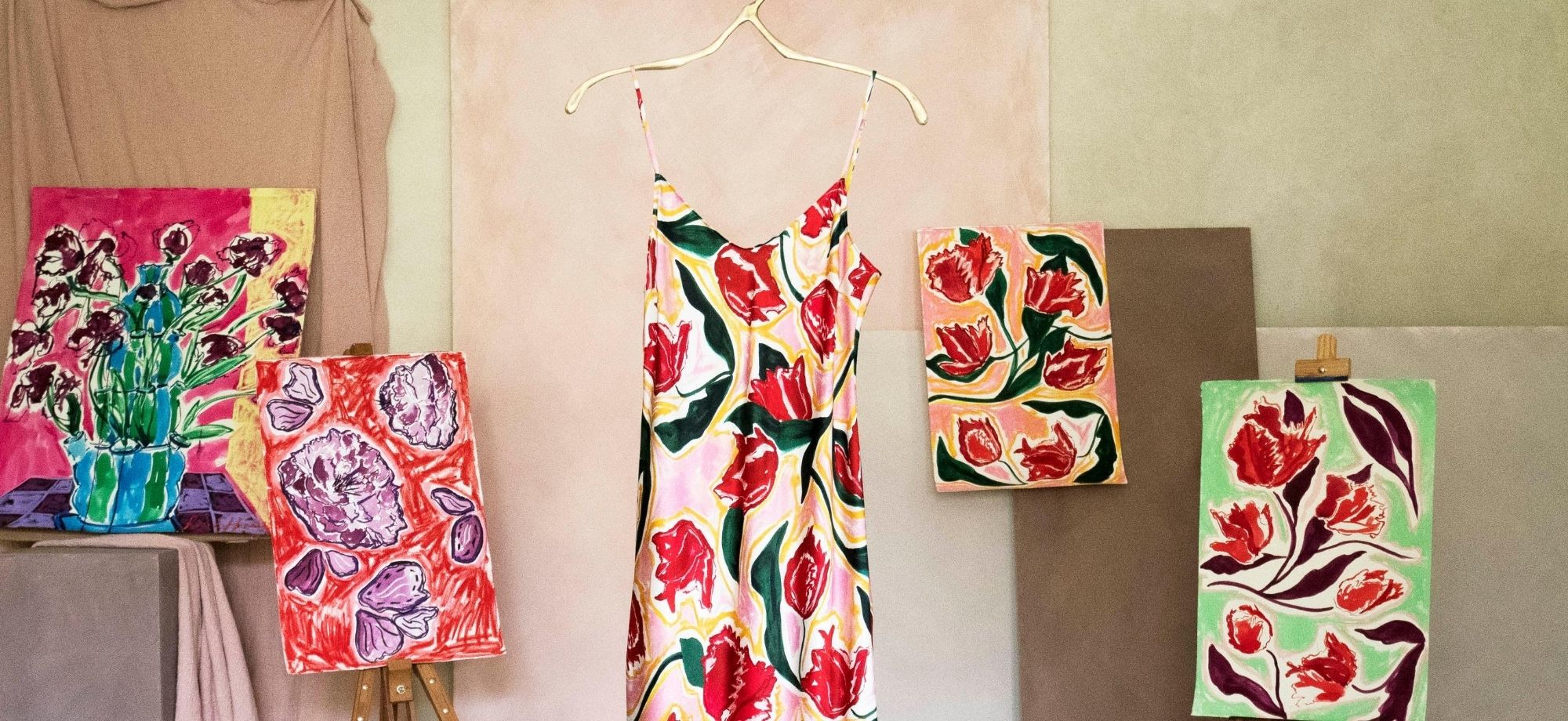 “We are thrilled to be partnering with a brand whose philosophy is so aligned with ours. We are both firm believers that quality is so much more important than quantity. The elegant silk slip dress is such a timeless design that will never go out of fashion and the simplicity of its design is a blank canvas for the artists to work with, letting the artwork take centre stage. Each piece is a wearable work of art - a collector’s item and provides the perfect addition to your art collection. We invite you to explore this alternative way to support your favourite PE artists.”
